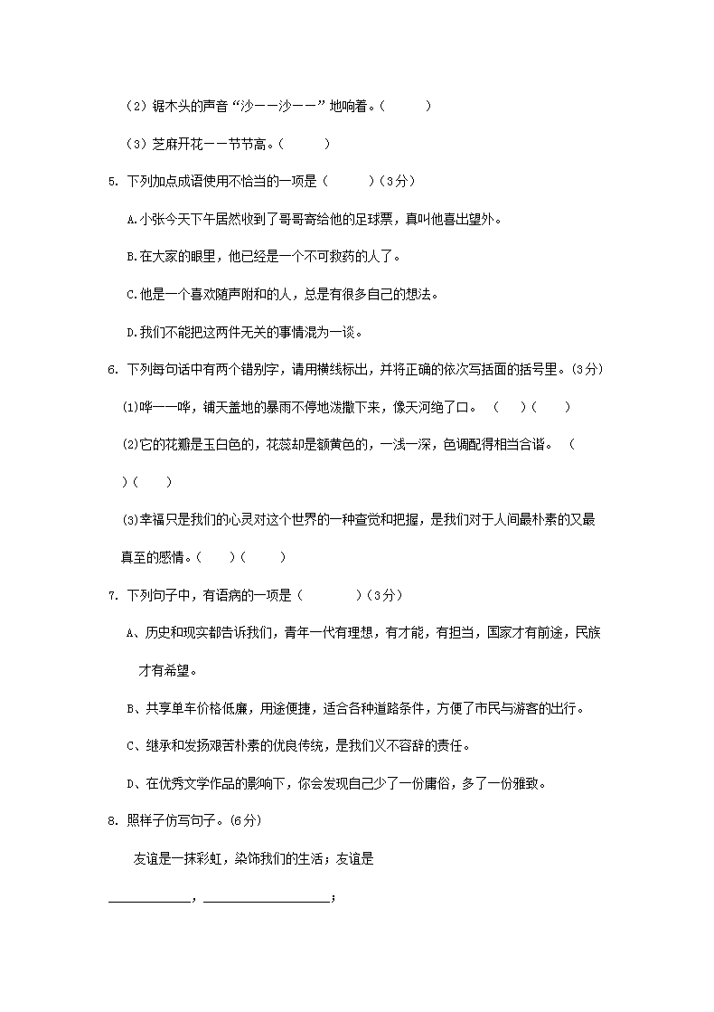 【文档预览】 无忧考网整理发布2019年四川乐山小升初语文真题及答案(Word版),前五页预览如下: