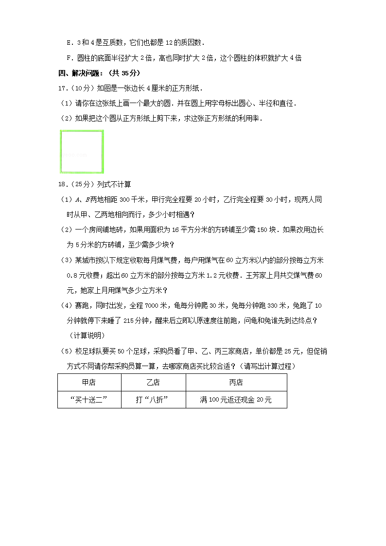 【文档预览】 无忧考网整理发布2017年甘肃天水市小升初数学真题及答案(Word版),前五页预览如下: