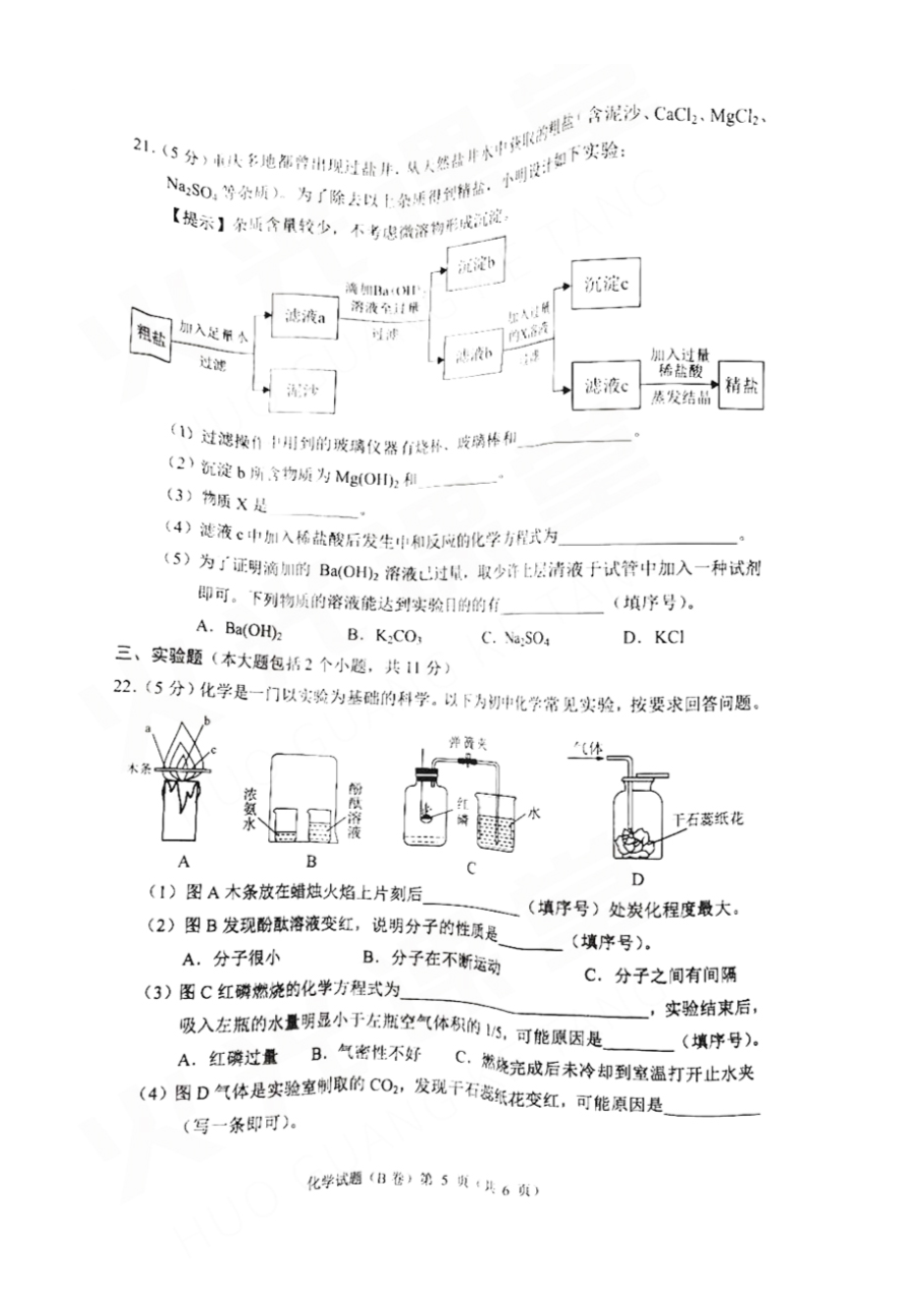 【文档预览】 无忧考网整理发布2021重庆渝中中考化学试题及答案(B卷)(图片版),前五页预览如下: