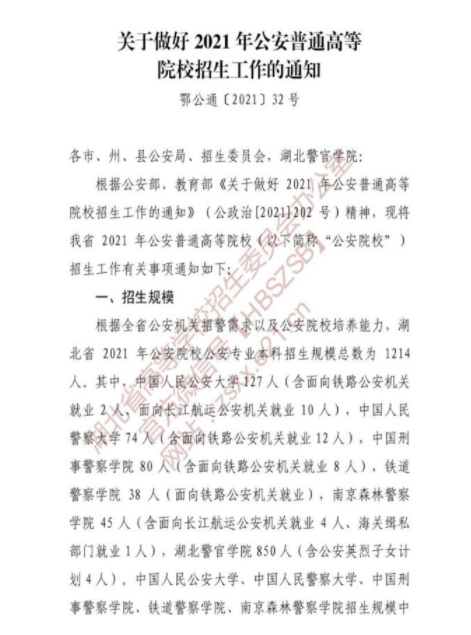 【#高考# #2021年湖北公安普通高等院校招生工作的通知#】©无忧考网从湖北省教育考试院了解到,2021年湖北公安普通高等院校招生工作的通知已经发布,为方便考生了解情况,现将有关事宜通知如下: