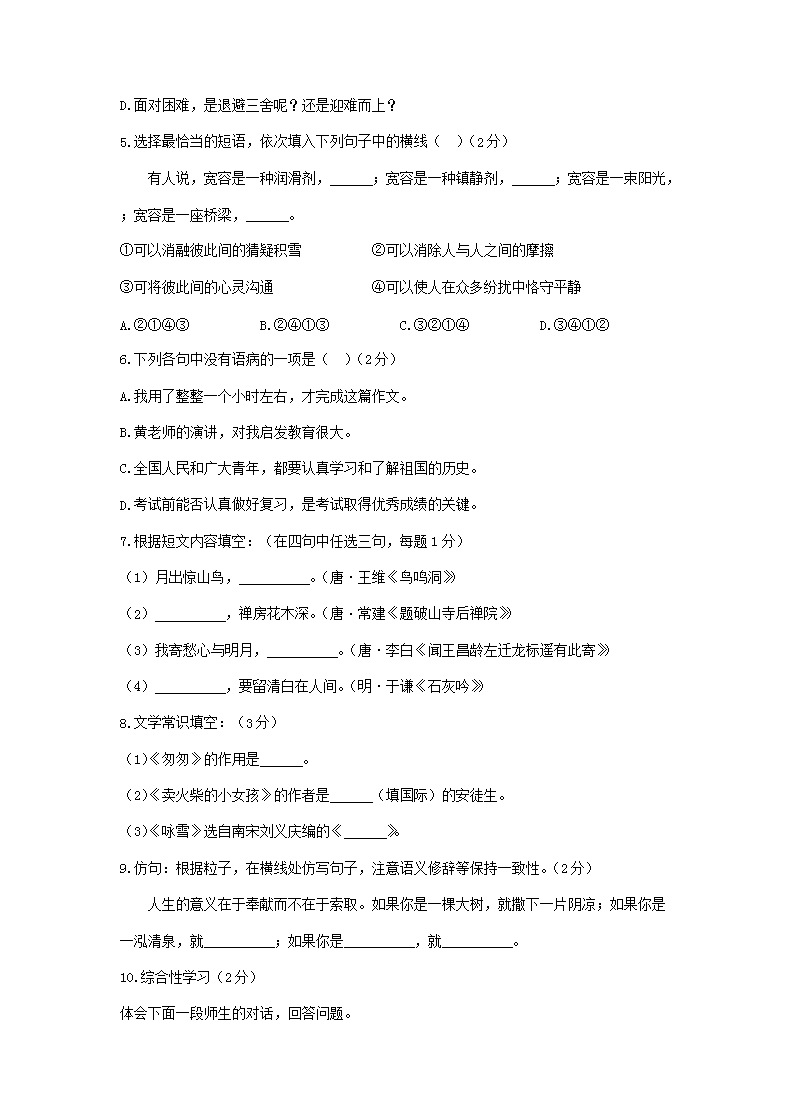 【文档名称】 2020年四川南充小升初语文真题及答案(Word版).doc