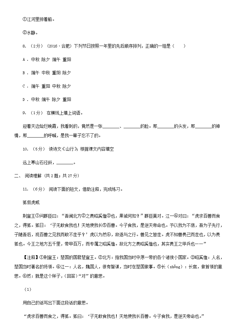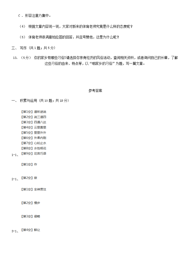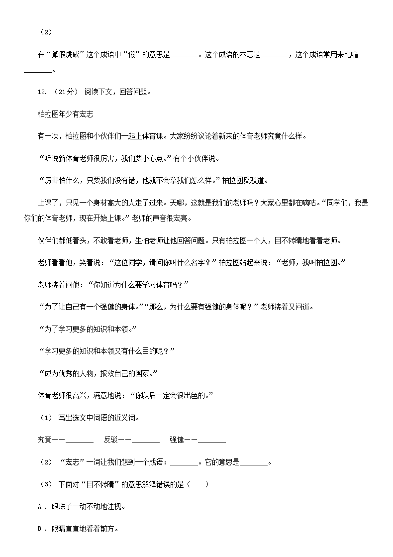 【文档名称】 2020年四川南充小升初语文真题及答案II卷(Word版).doc