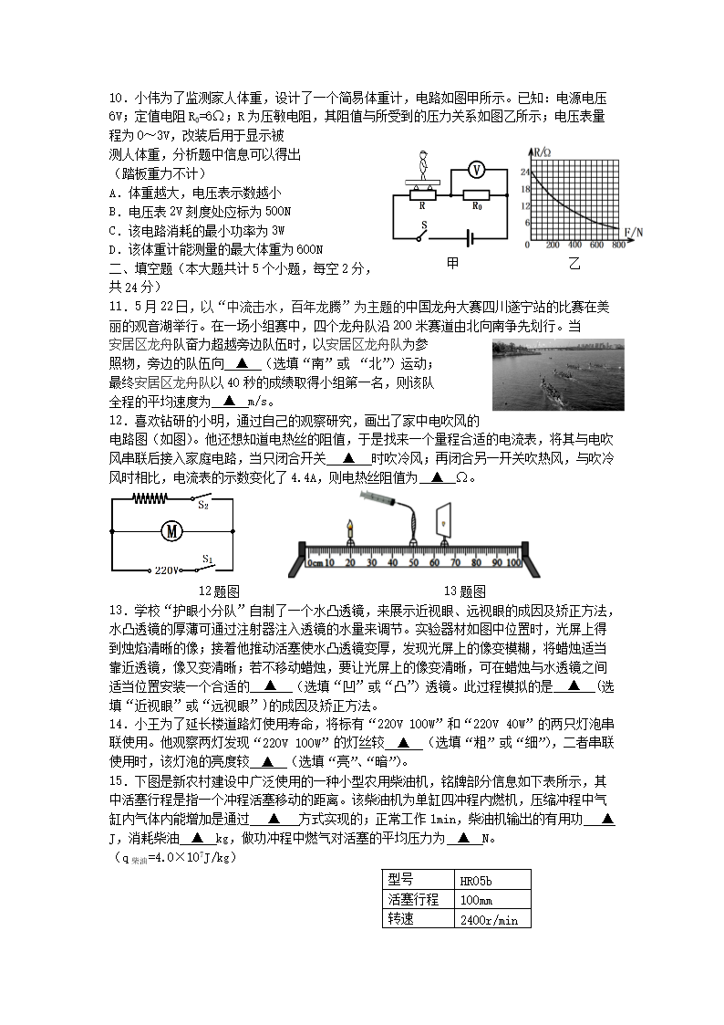 【文档名称】 2021年四川省遂宁市中考物理真题及答案(Word版).doc