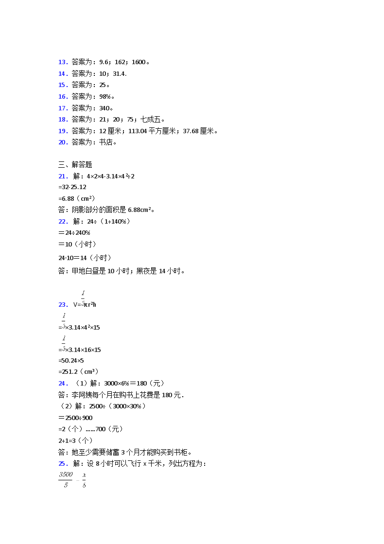 【文档名称】 2020年四川南充小升初数学及答案(Word版).doc