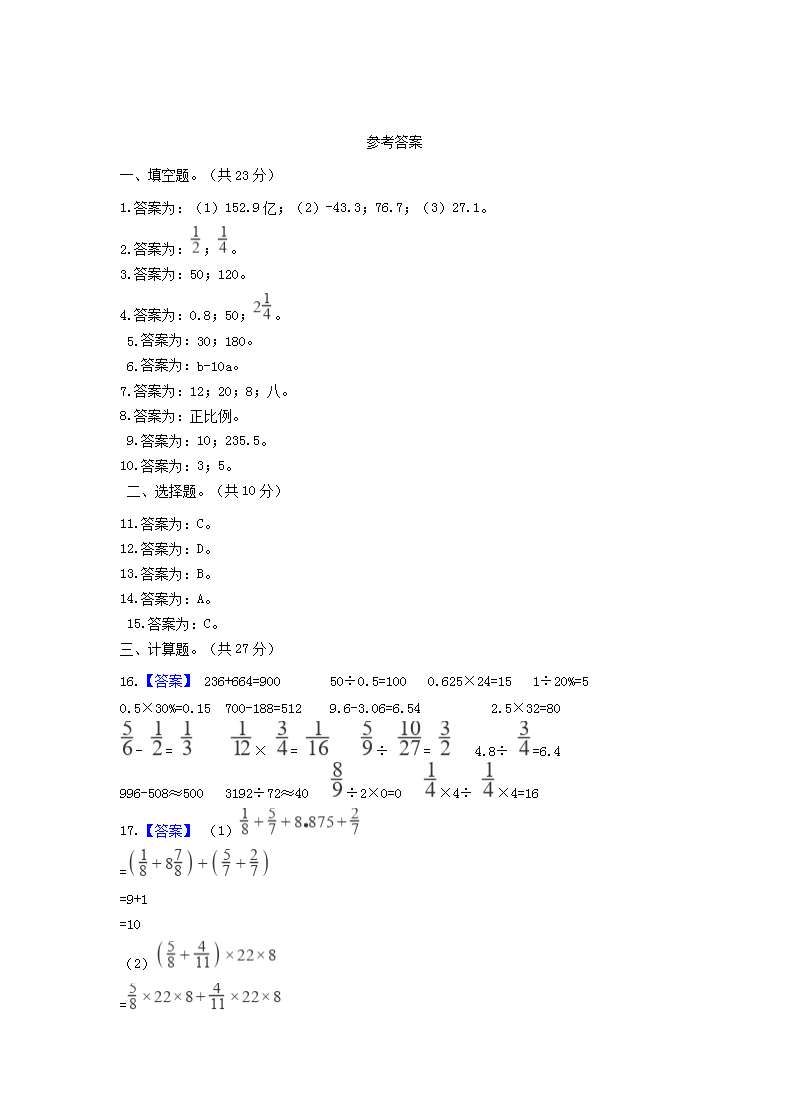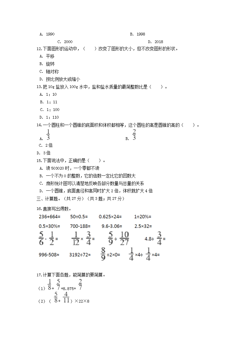 【文档名称】 2018年四川南充小升初数学真题及答案(Word版).doc
