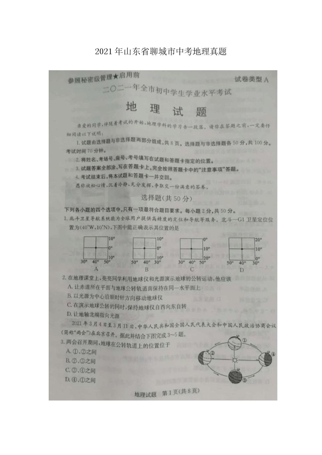 【文档预览】 无忧考网整理发布2021年山东省聊城市中考地理真题(图片版),前五页预览如下:
