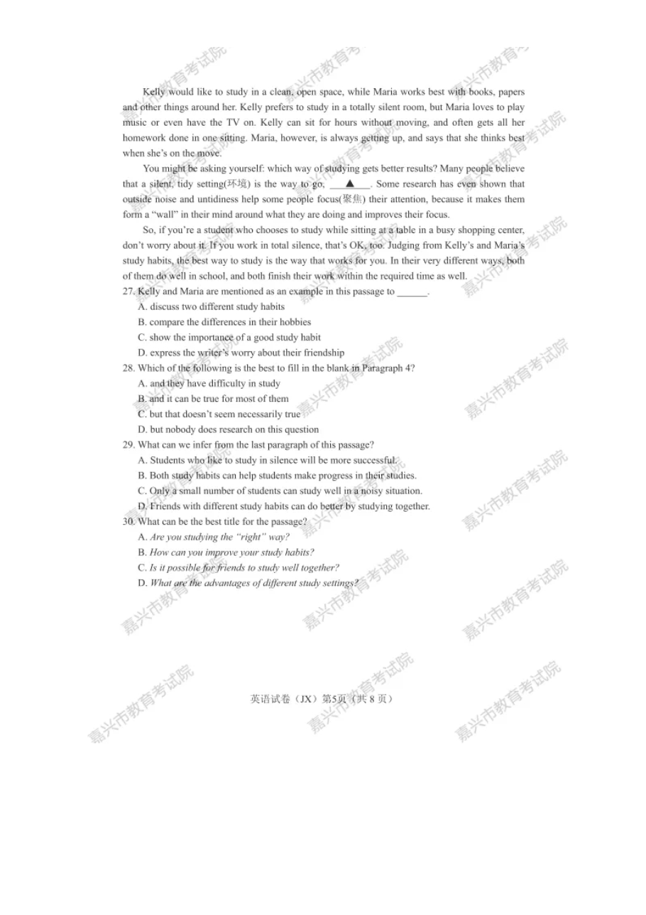 【文档预览】 无忧考网整理发布2021年浙江嘉兴市中考英语试题及答案(图片版),前五页预览如下:
