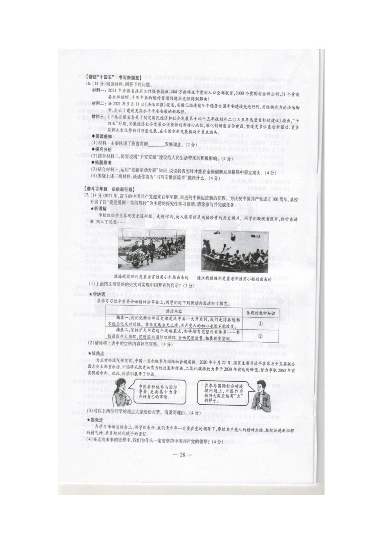 【文档名称】 2021年安徽芜湖中考道德与法治试题及答案(图片版).doc