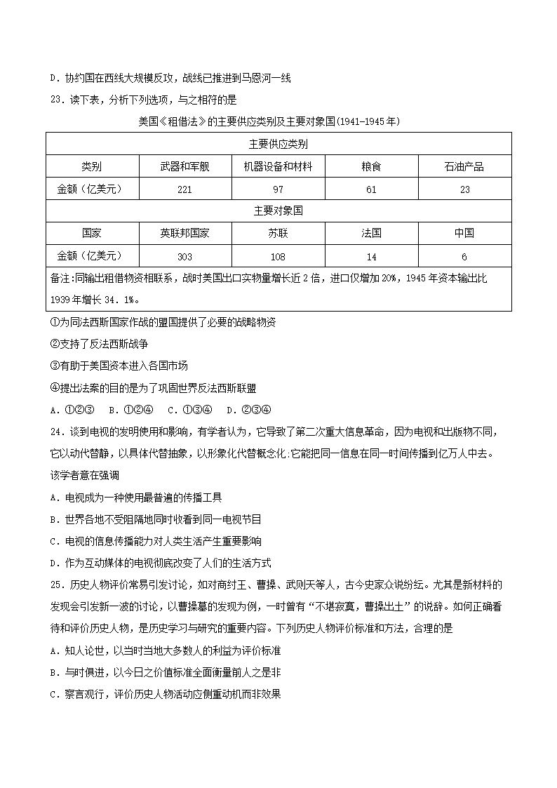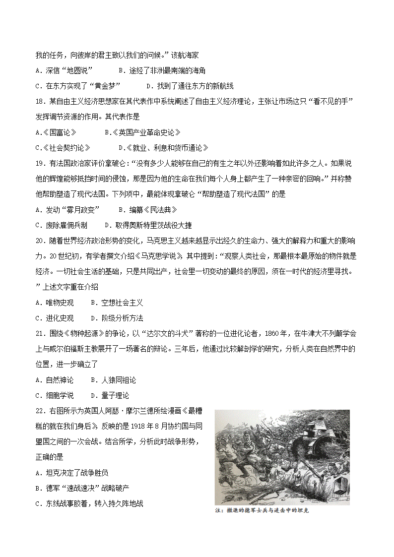 【文档名称】 2021年6月浙江普通高中学业水平选择性考试历史真题及答案(Word版).doc