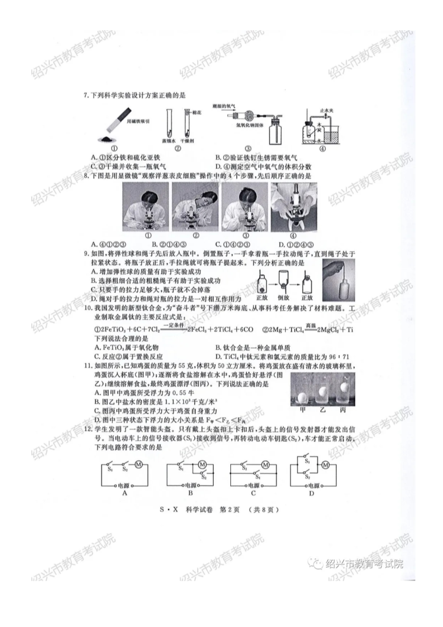 【文档预览】 无忧考网整理发布2021年浙江绍兴市中考科学试题及答案(图片版),前五页预览如下: