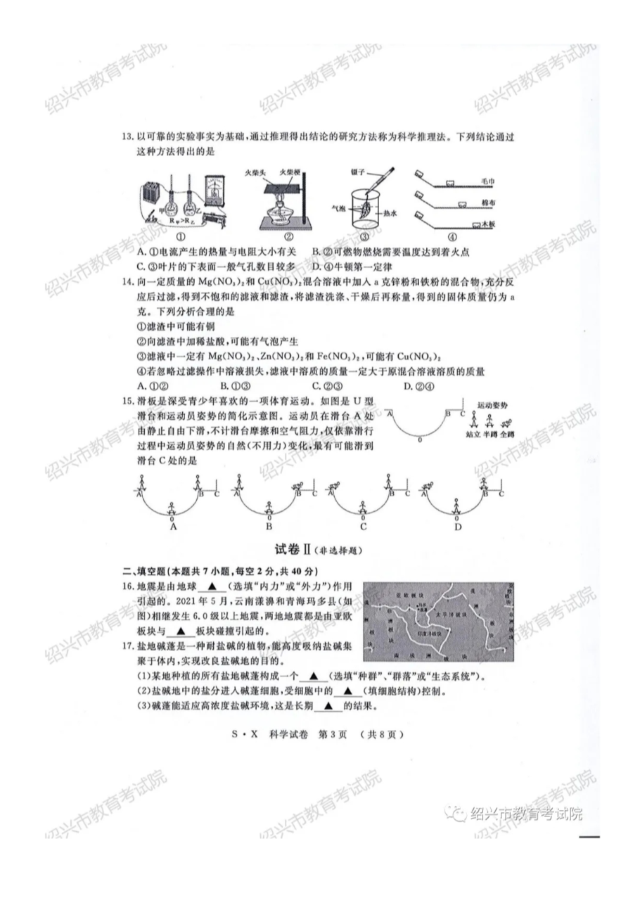 【文档名称】 2021年浙江绍兴市中考科学试题及答案(图片版).doc