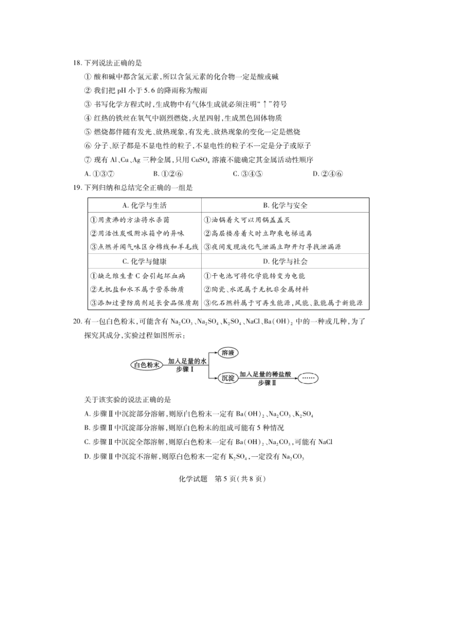 【文档预览】 无忧考网整理发布2021年山东省泰安市中考化学真题及答案(图片版),前五页预览如下: