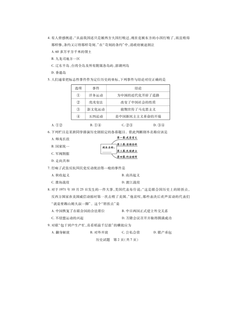 【文档名称】 2021年山东省泰安市中考历史真题及答案(图片版).doc