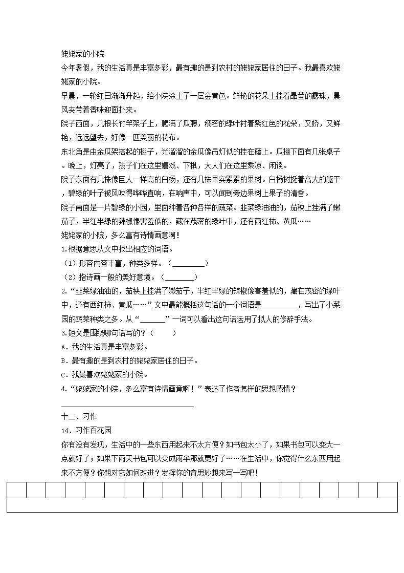 【文档名称】 2020年四川眉山小升初语文真题及答案(Word版).doc