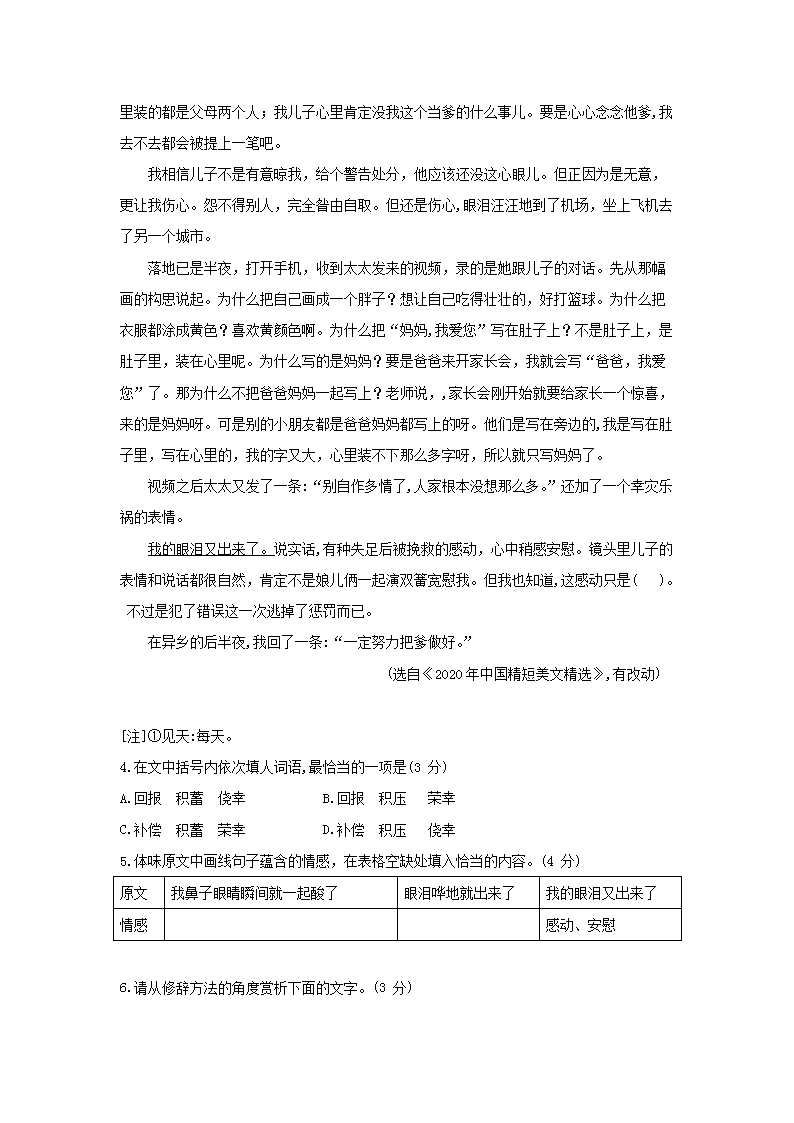 【文档名称】 2021年安徽淮南中考语文试题及答案(Word版).doc