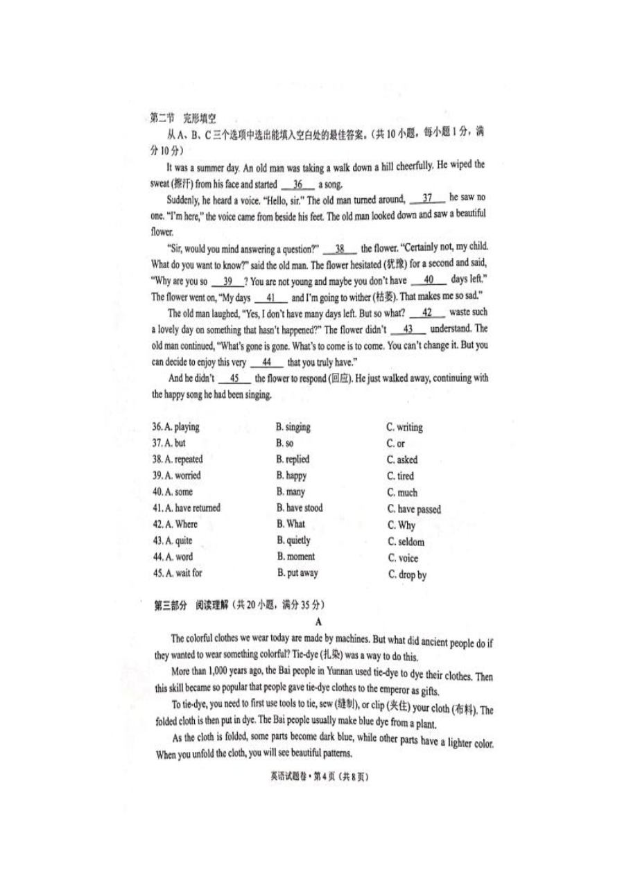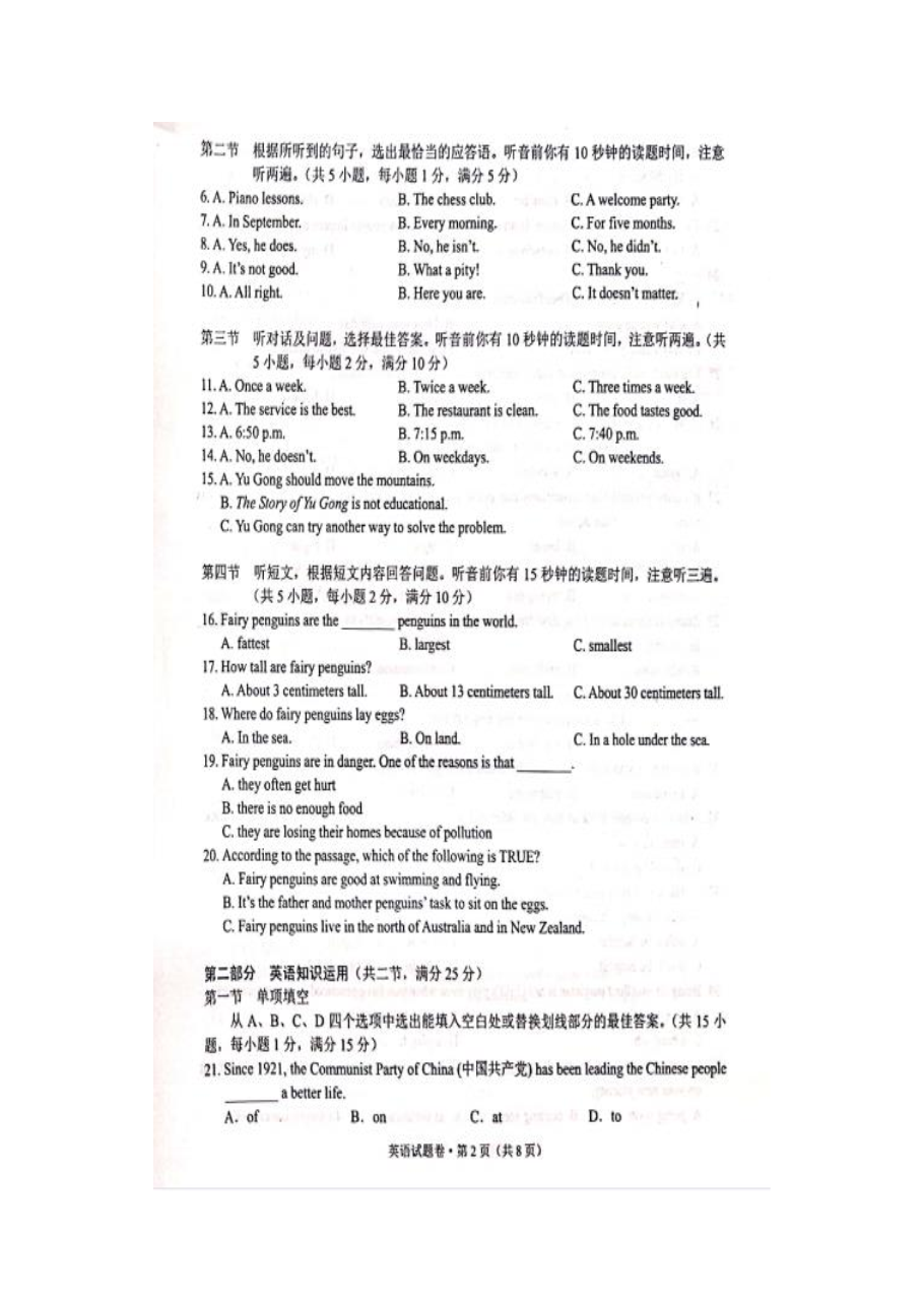 【文档名称】 2021年云南昆明中考英语真题(图片版).doc