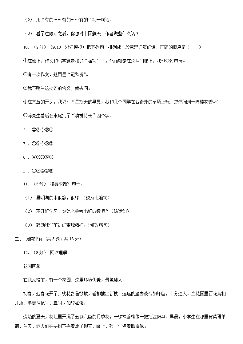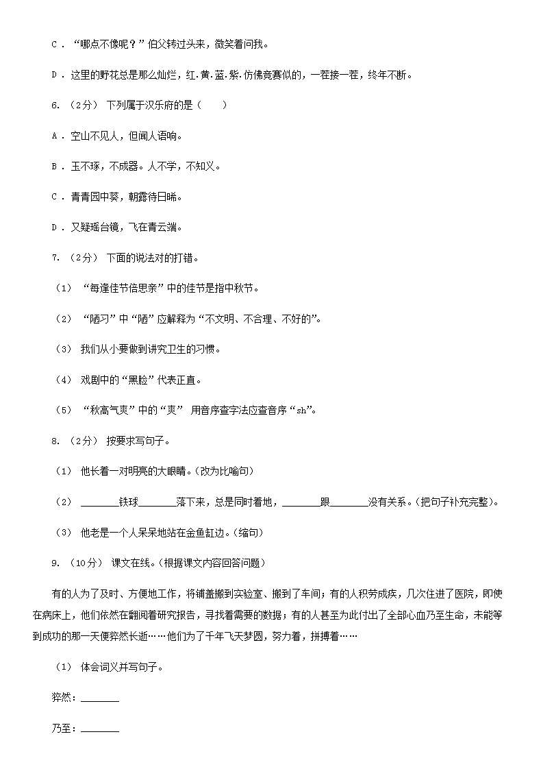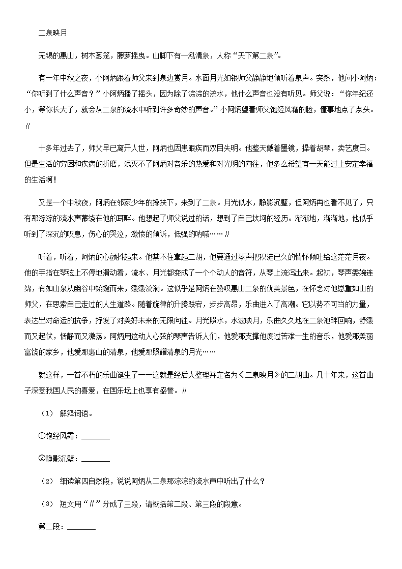 【文档名称】 2020年四川雅安小升初语文真题及答案A卷(Word版).doc