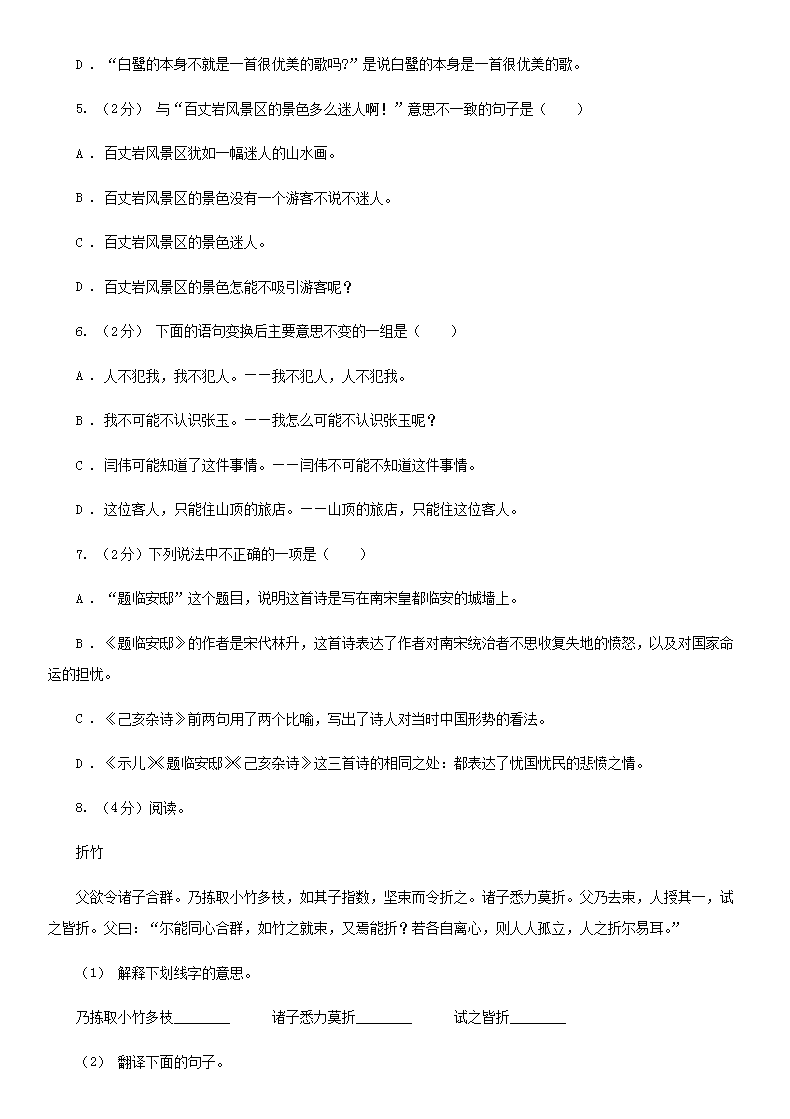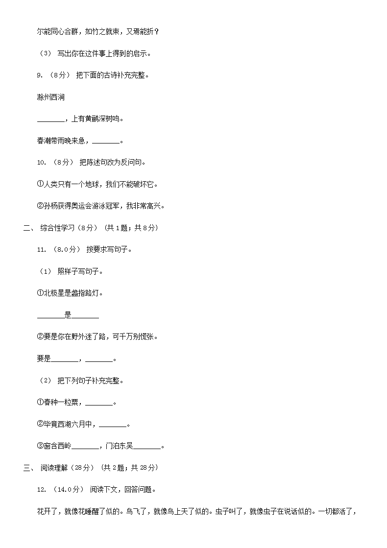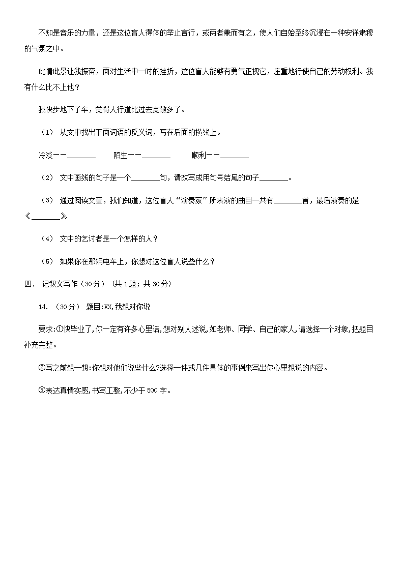 【文档名称】 2020年四川巴中小升初语文真题及答案A卷(Word版).doc