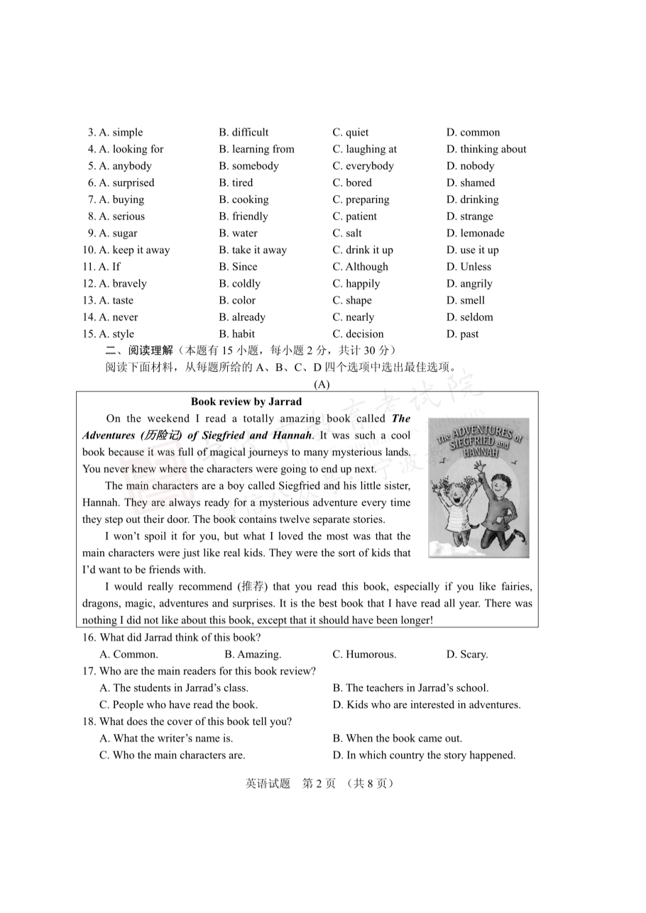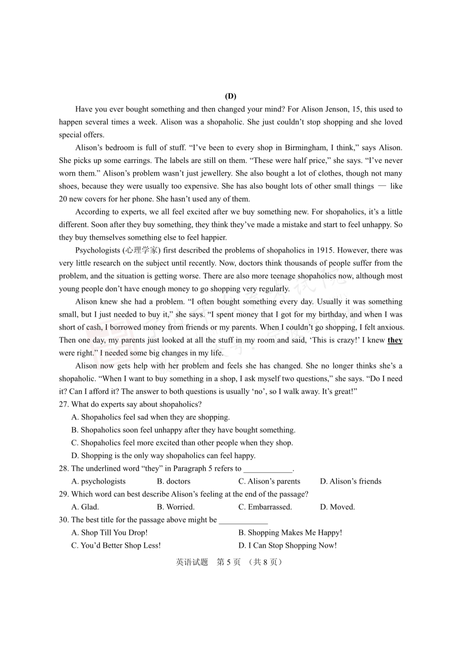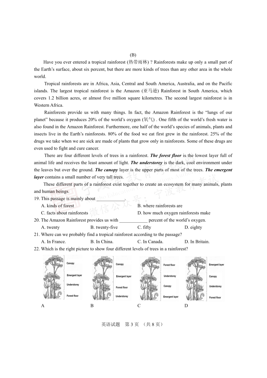 【文档预览】 无忧考网整理发布2021年浙江宁波市中考英语试题及答案(图片版),前五页预览如下:
