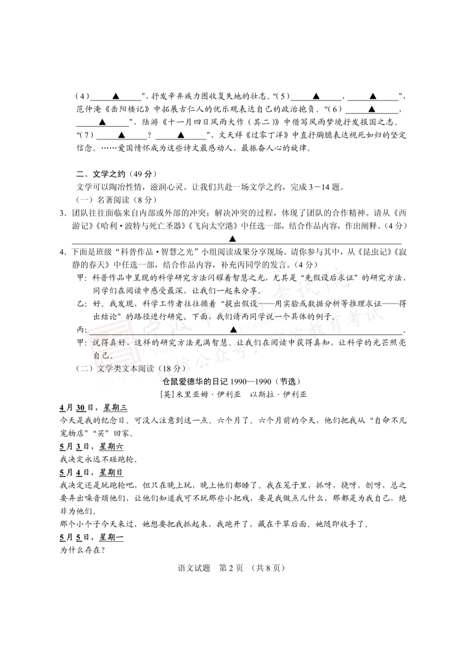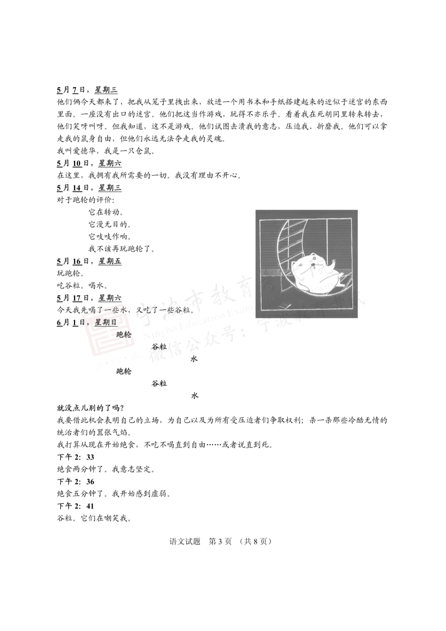 【文档名称】 2021年浙江宁波市中考语文试题及答案(图片版).doc