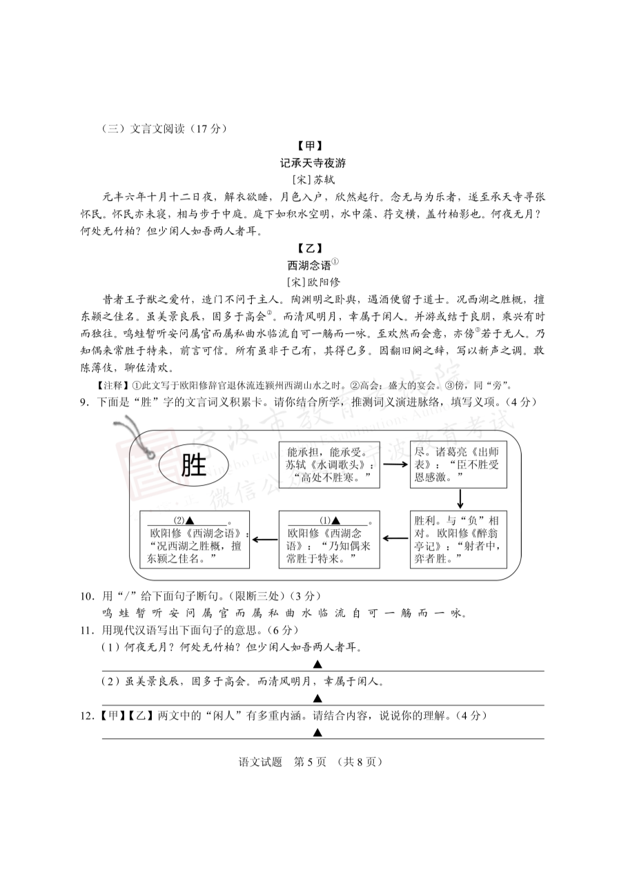 【文档预览】 无忧考网整理发布2021年浙江宁波市中考语文试题及答案(图片版),前五页预览如下: