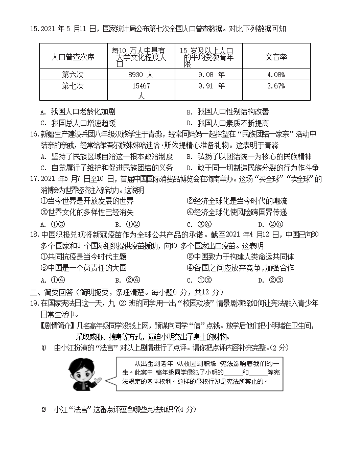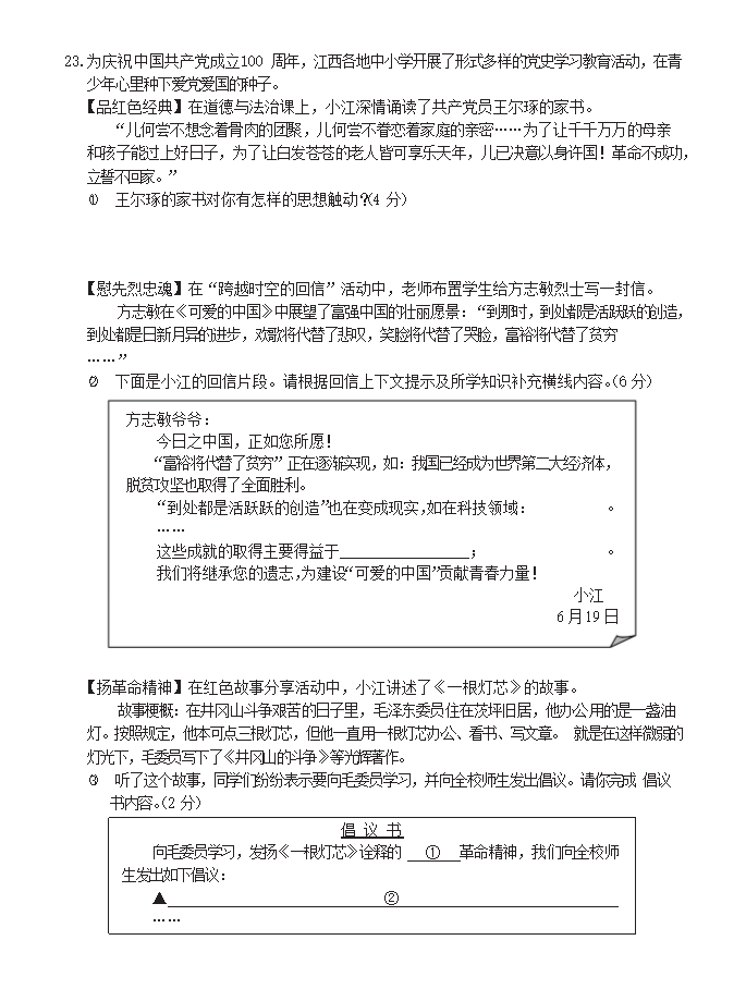 【文档名称】 2021年江西萍乡市中考政治试题及答案(Word版).doc