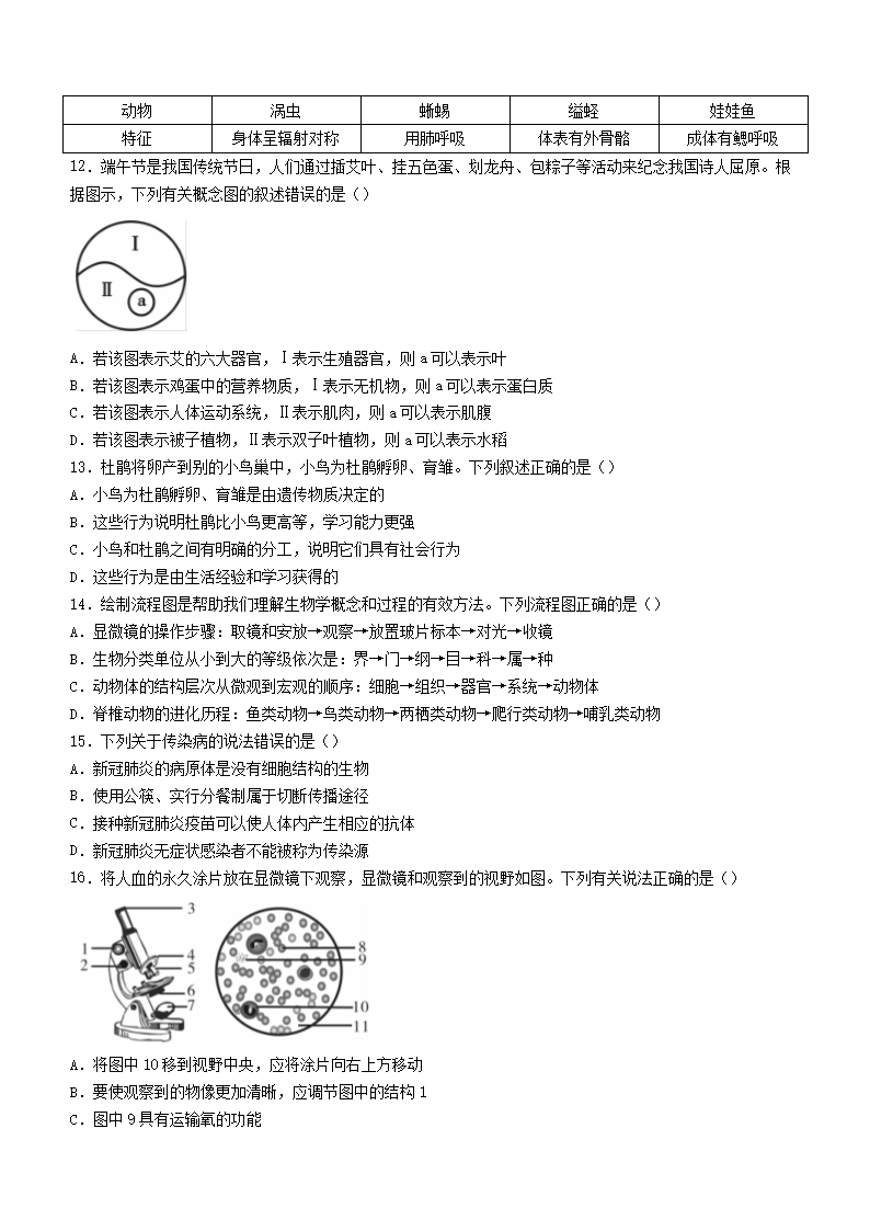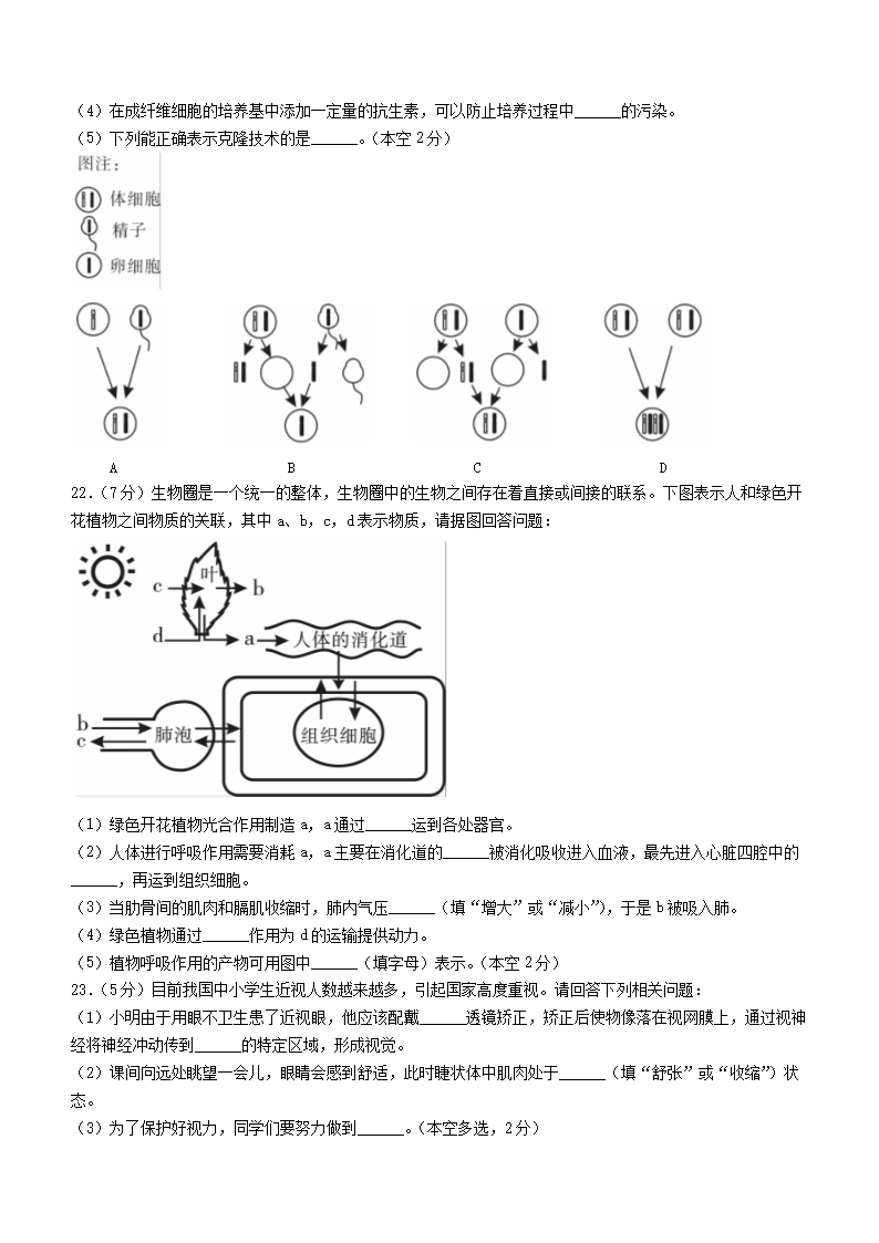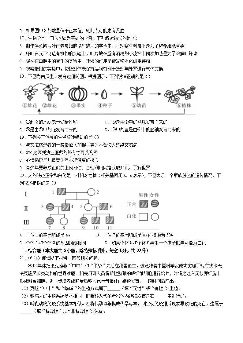 【文档名称】 2021年江西新余市中考生物试题及答案(Word版).doc
