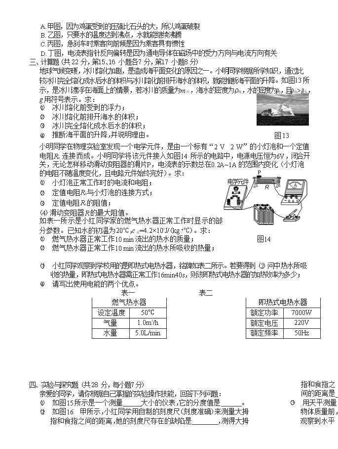 【文档名称】 2021年江西新余市中考物理试题及答案(Word版).doc