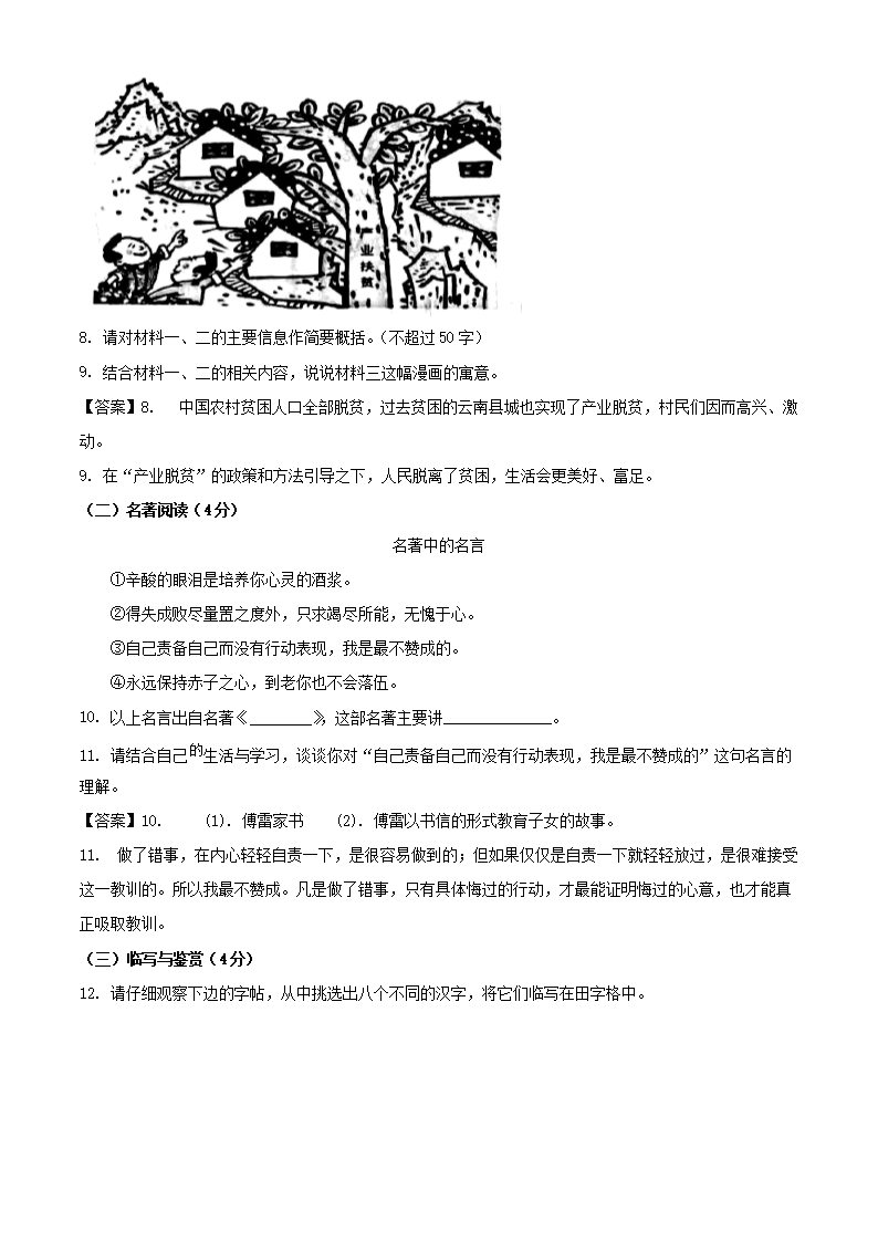 【文档预览】 无忧考网整理发布2021年云南怒江中考语文试题及答案(Word版),前五页预览如下: