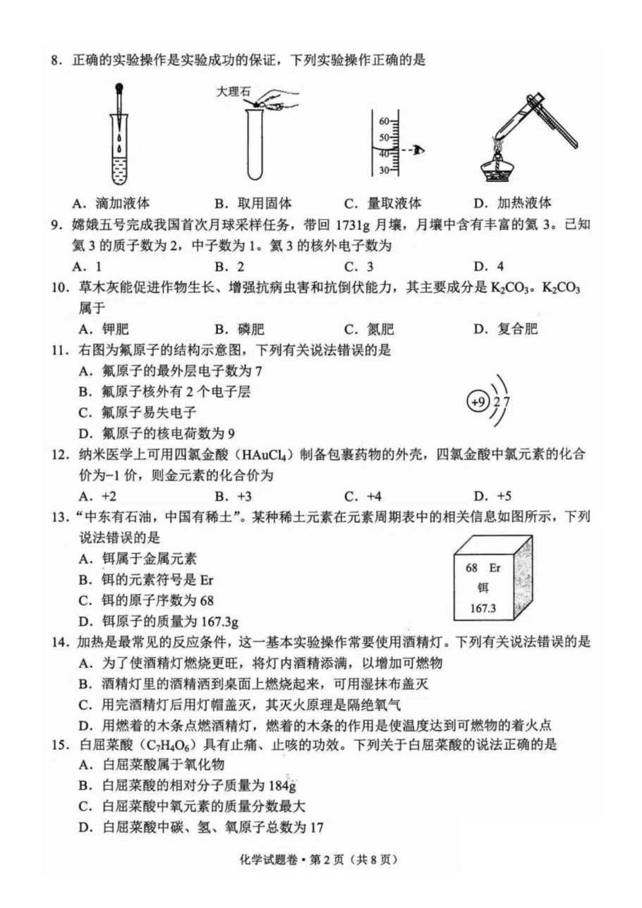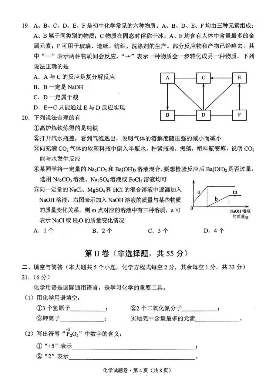 【文档预览】 无忧考网整理发布2021年云南曲靖中考化学试题及答案(图片版),前五页预览如下: