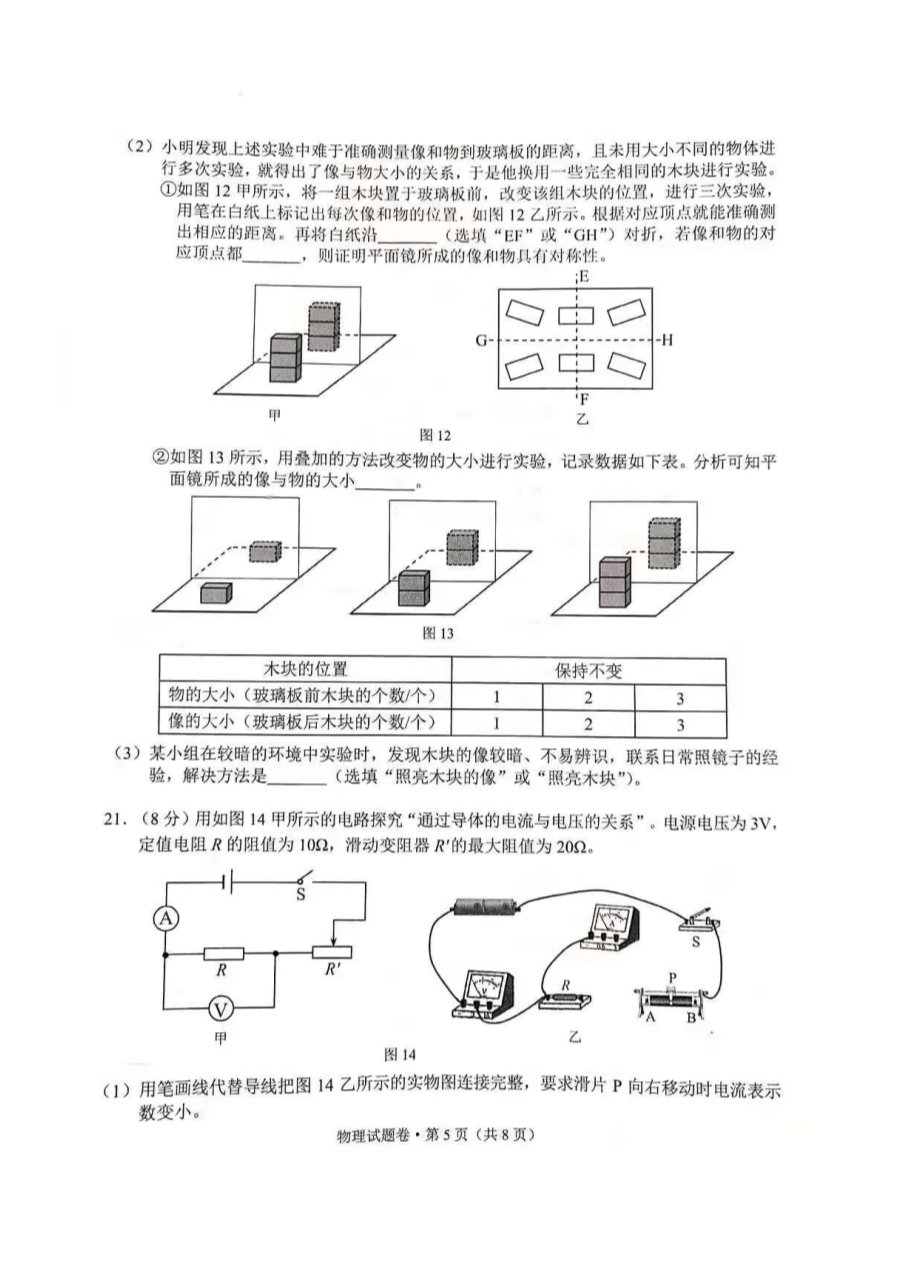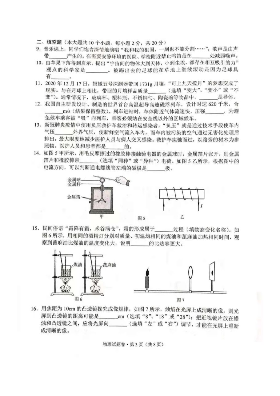 【文档名称】 2021年云南西双版纳中考物理试题及答案(图片版).doc