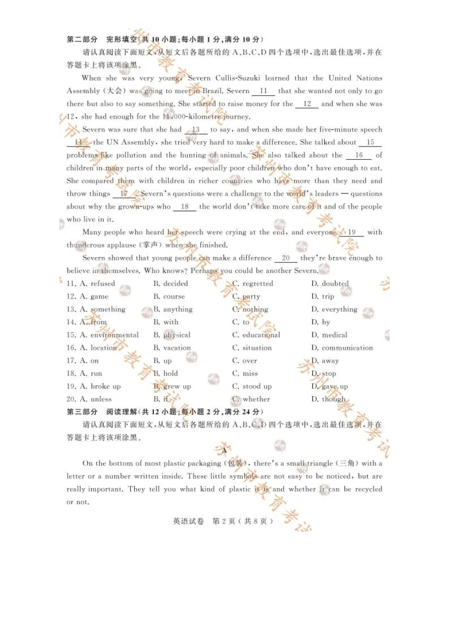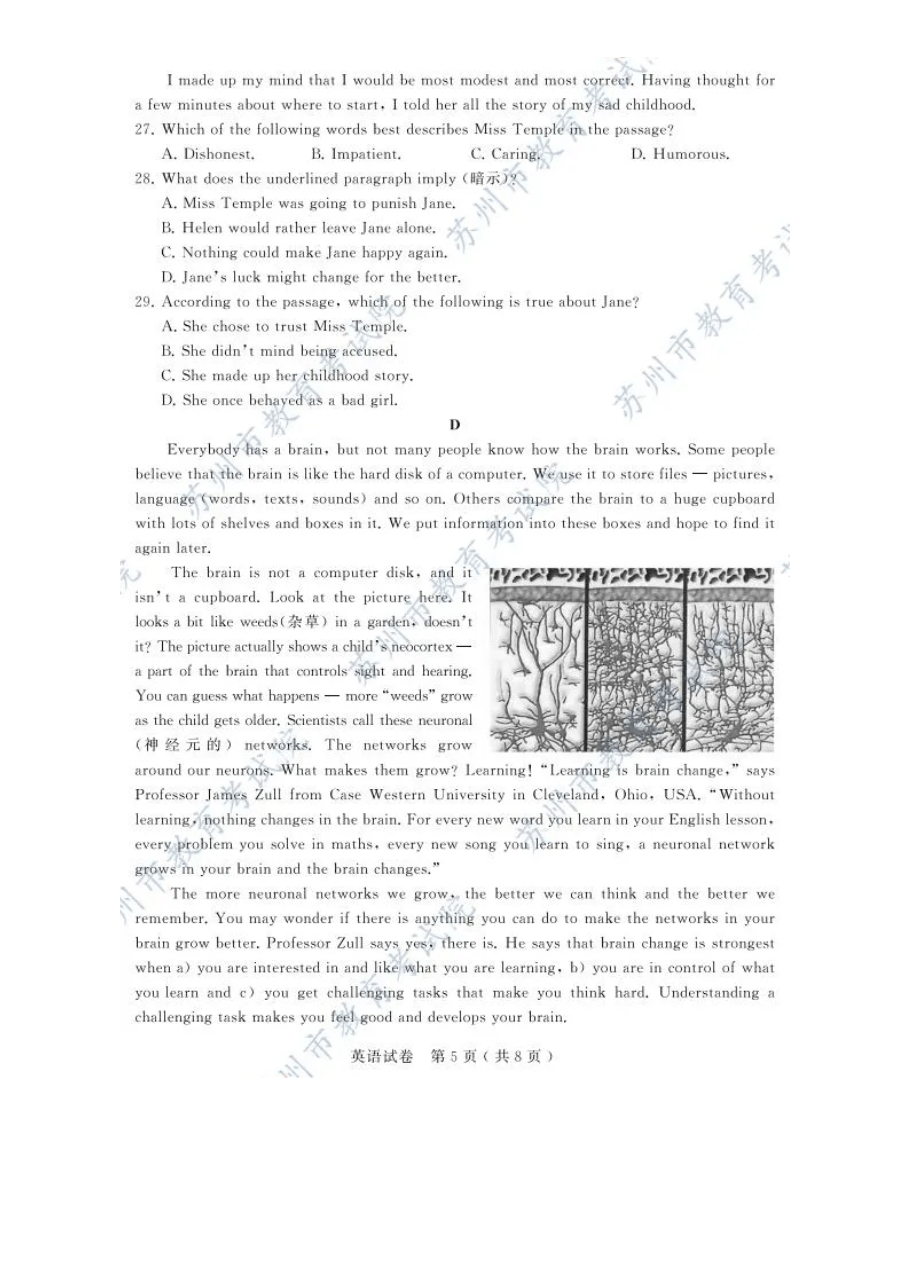 【文档预览】 无忧考网整理发布2021年江苏省苏州市中考英语试题及答案(图片版),前五页预览如下: