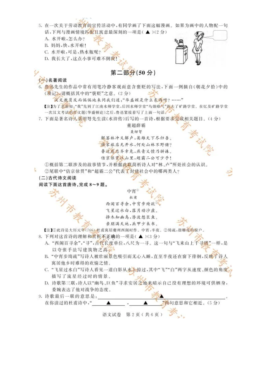 【文档预览】 无忧考网整理发布2021年江苏省苏州市中考语文试题及答案(图片版),前五页预览如下: