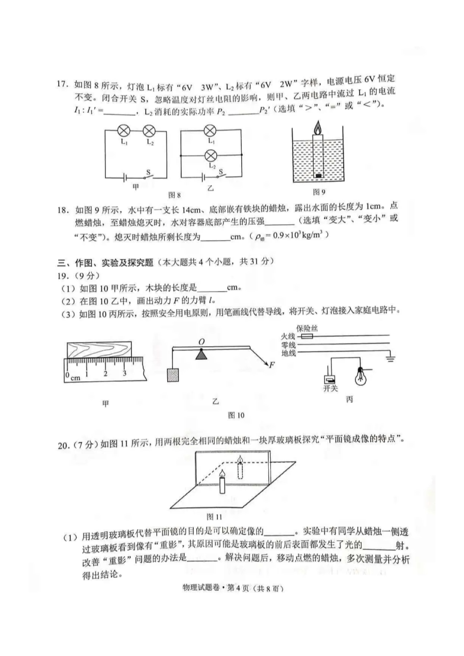 【文档名称】 2021年云南楚雄中考物理试题及答案(图片版).doc