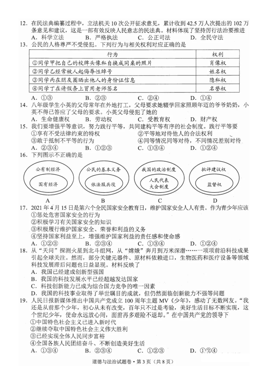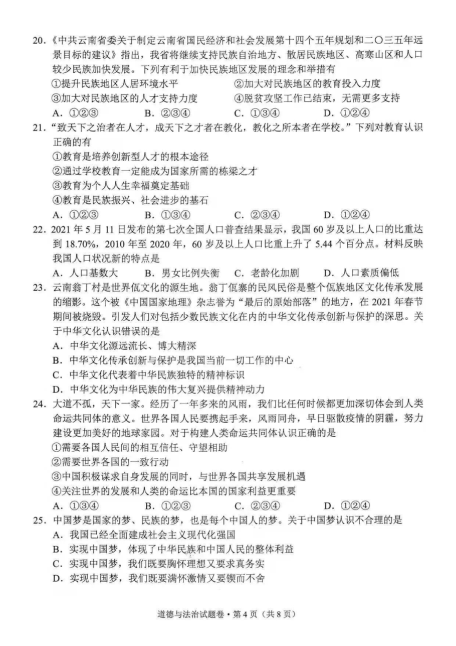 【文档名称】 2021年云南楚雄中考政治试题及答案(图片版).doc