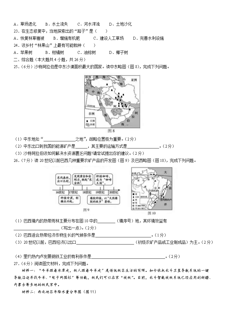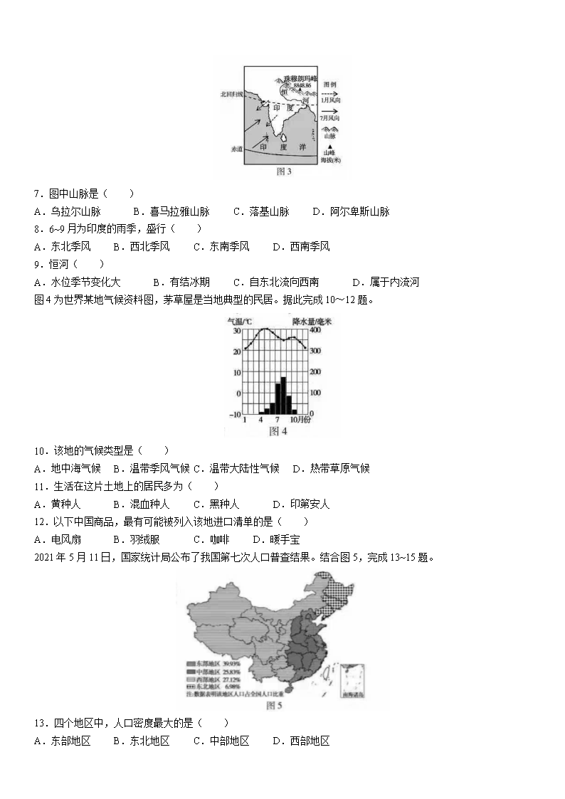 【文档名称】 2021年江西吉安市中考地理试题及答案(Word版).doc