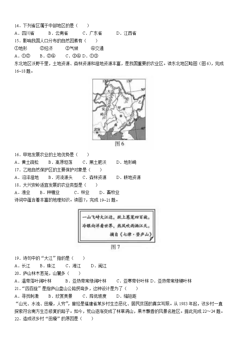 【文档预览】 无忧考网整理发布2021年江西吉安市中考地理试题及答案(Word版),前五页预览如下: