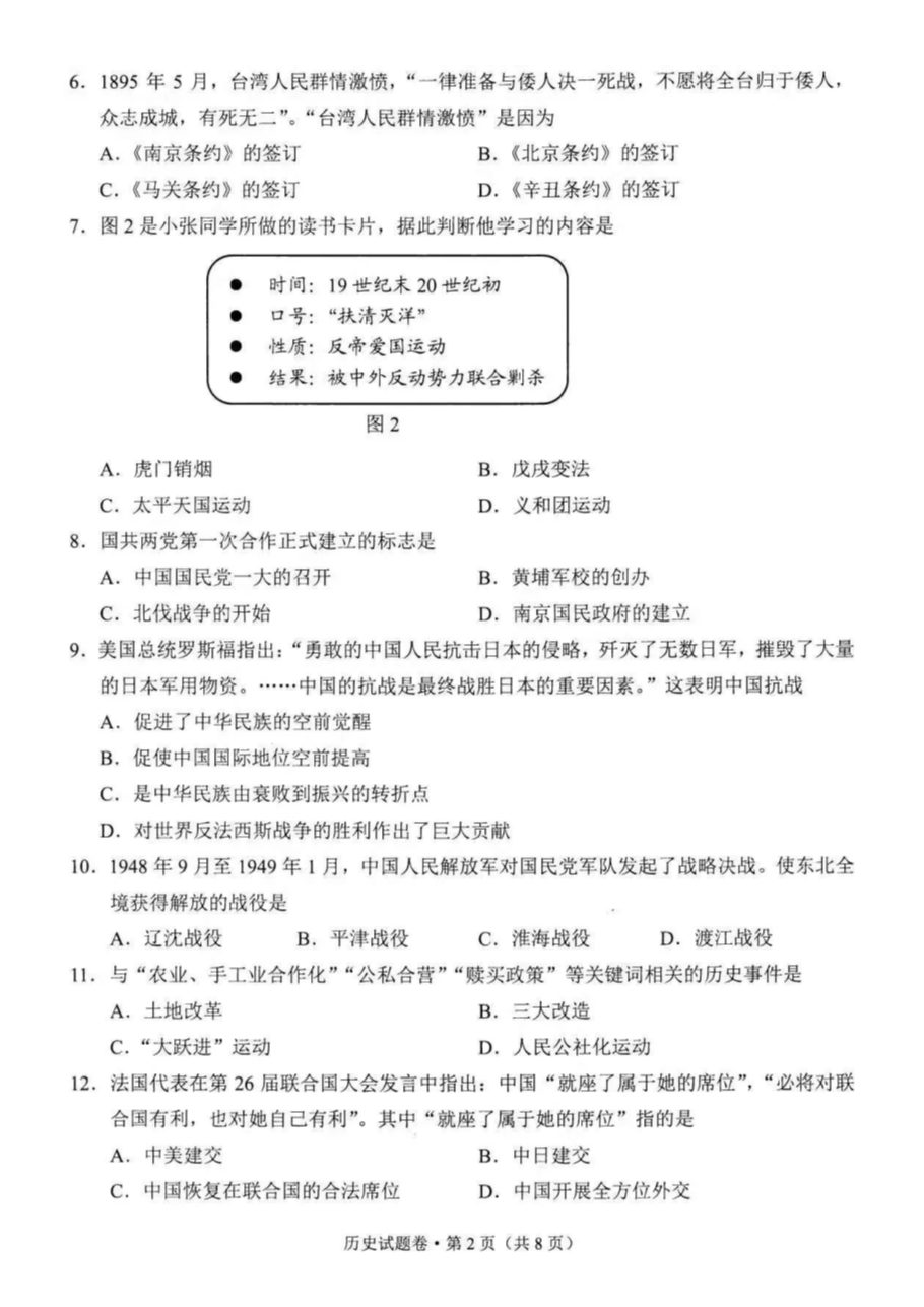 【文档名称】 2021年云南大理中考历史试题及答案(图片版).doc