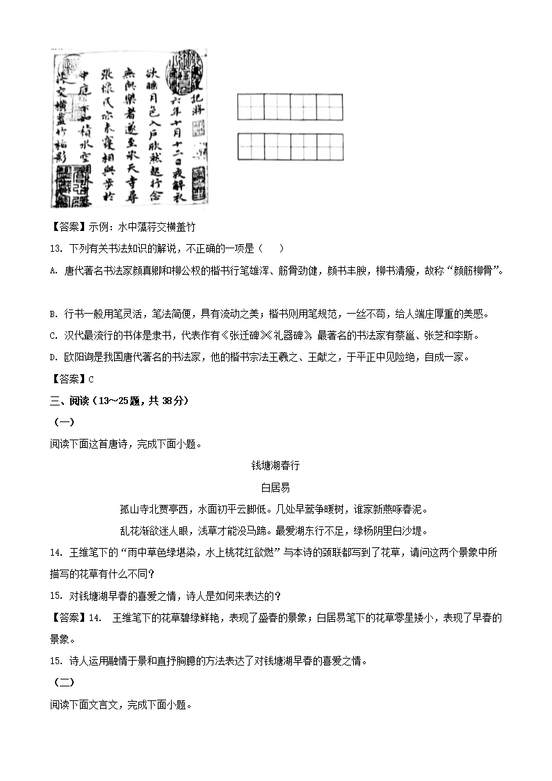 【文档名称】 2021年云南大理中考语文试题及答案(Word版).doc