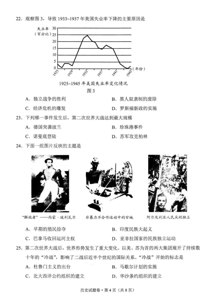 【文档名称】 2021年云南迪庆中考历史试题及答案(图片版).doc