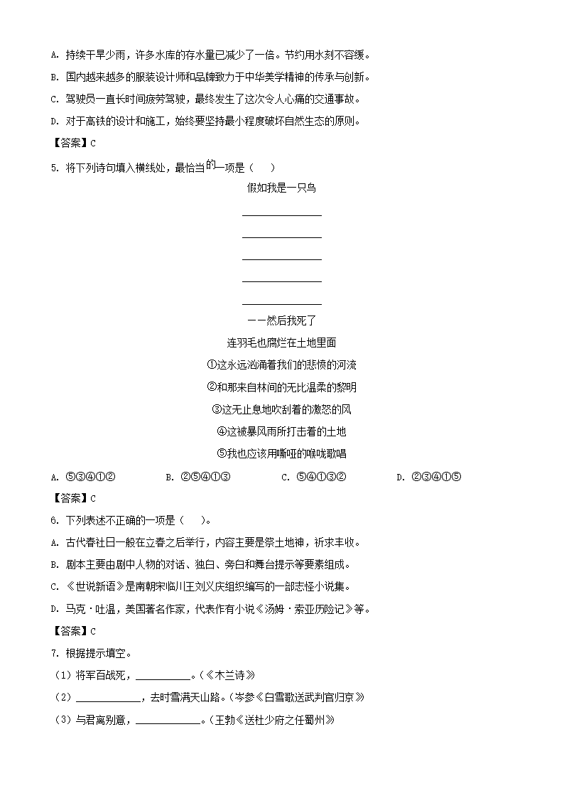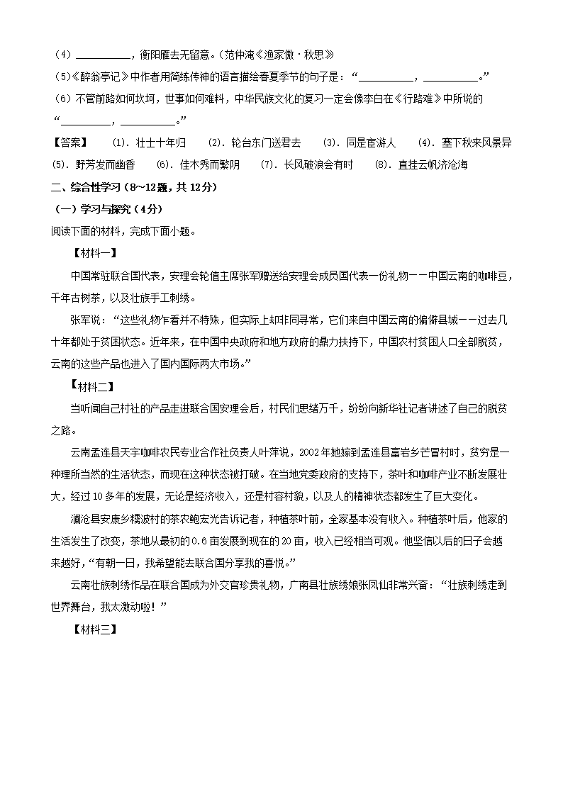 【文档名称】 2021年云南迪庆中考语文试题及答案(Word版).doc
