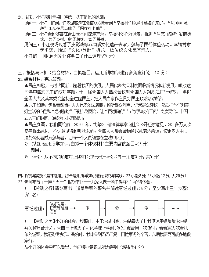 【文档名称】 2021年江西九江市中考政治试题及答案(Word版).doc