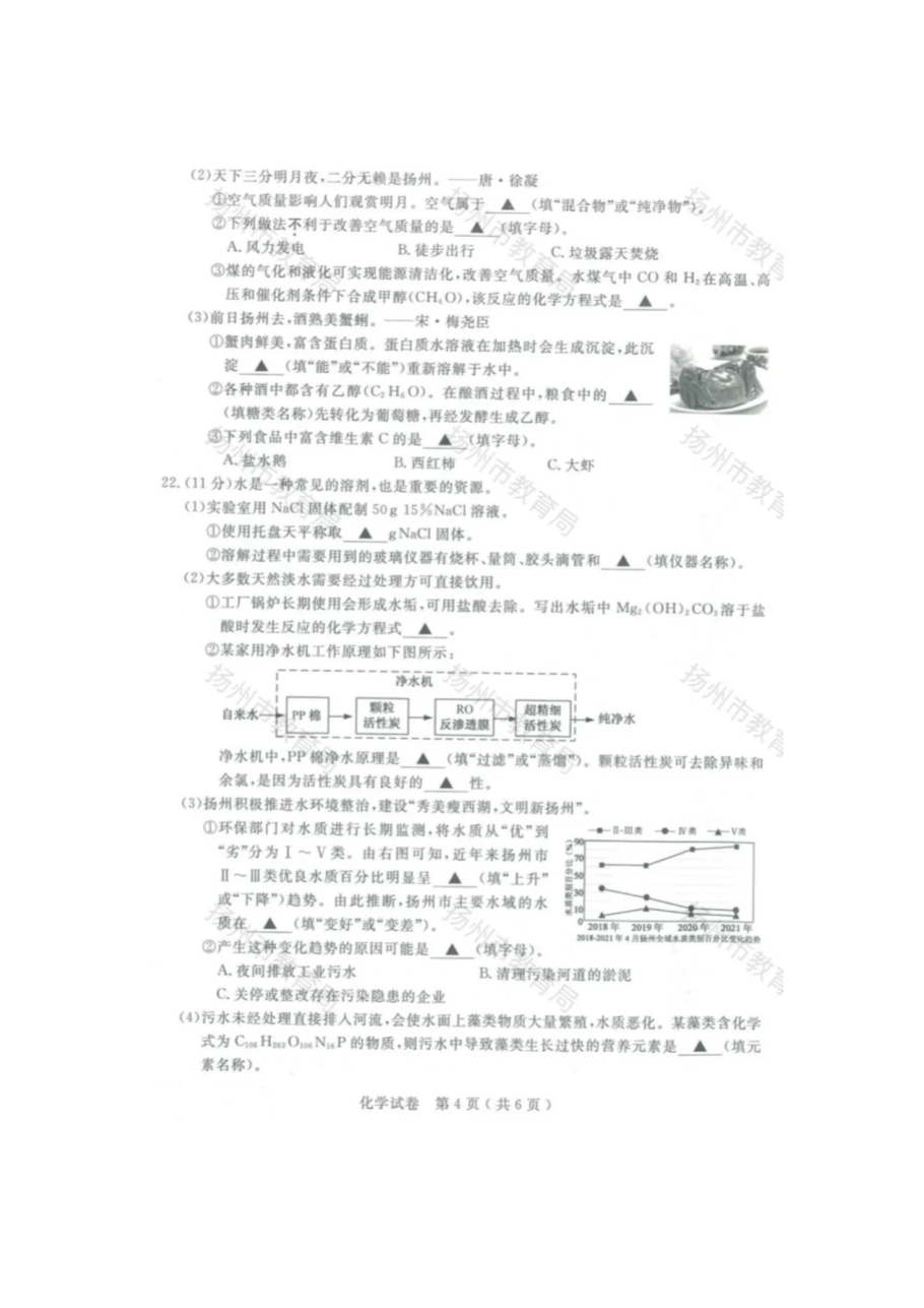 【文档名称】 2021年江苏省扬州市中考化学真题及答案(图片版).doc