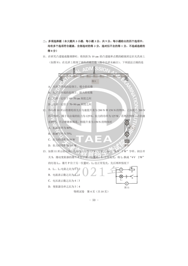 【文档预览】 无忧考网整理发布2021年天津市中考物理试题及答案(图片版),前五页预览如下: