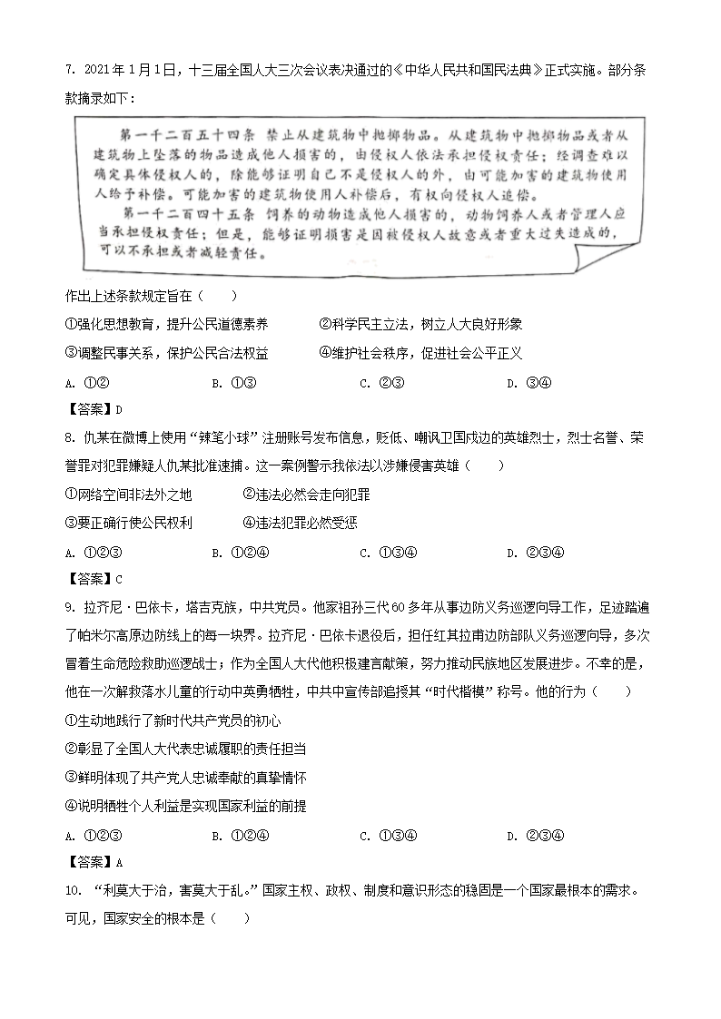 【文档名称】 2021年四川省成都市中考道德与法治试题及答案(Word版).doc