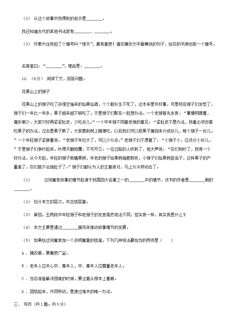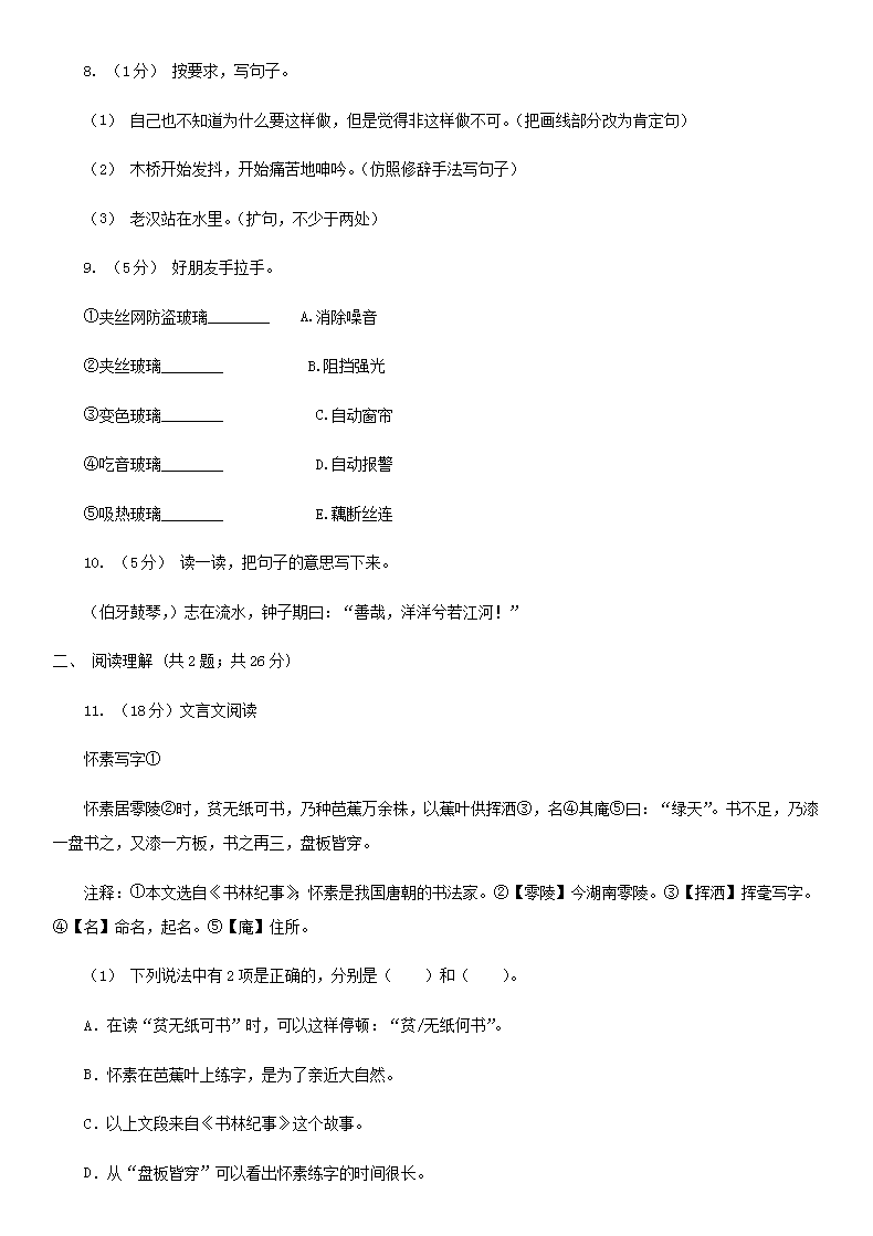 【文档名称】 2020年四川巴中小升初语文真题及答案I卷(Word版).doc