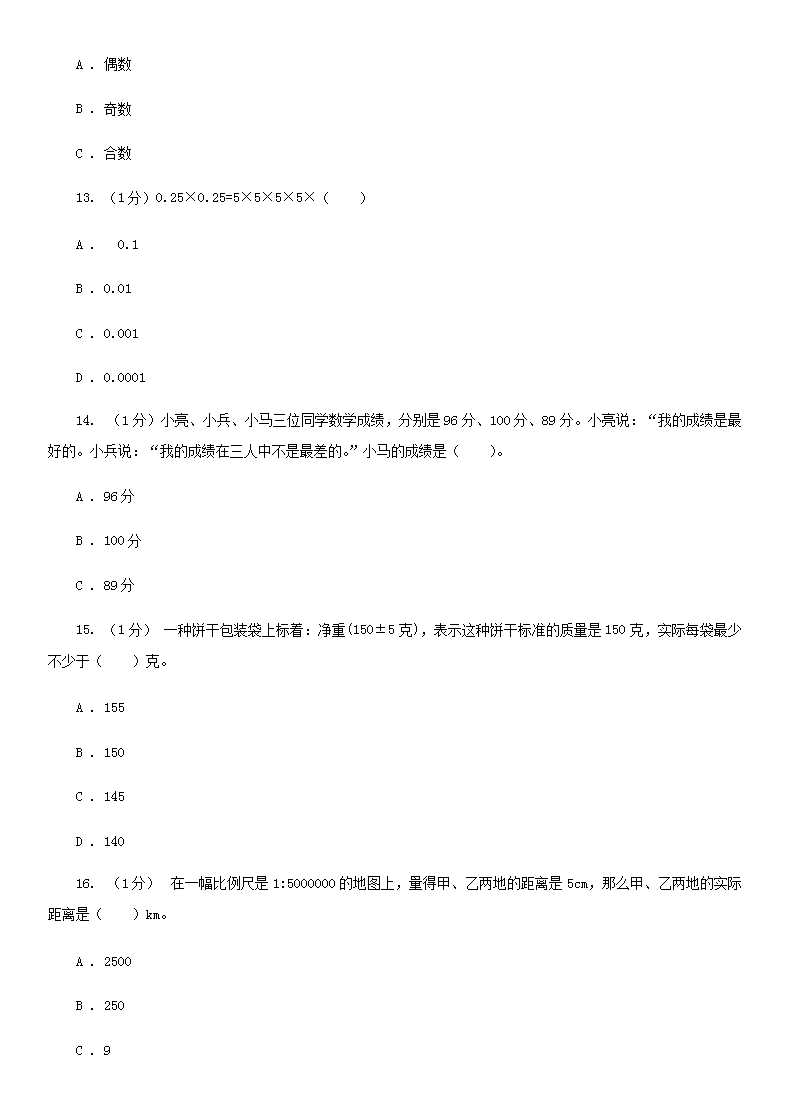 【文档名称】 2020年四川巴中小升初数学真题及答案II卷(Word版).doc