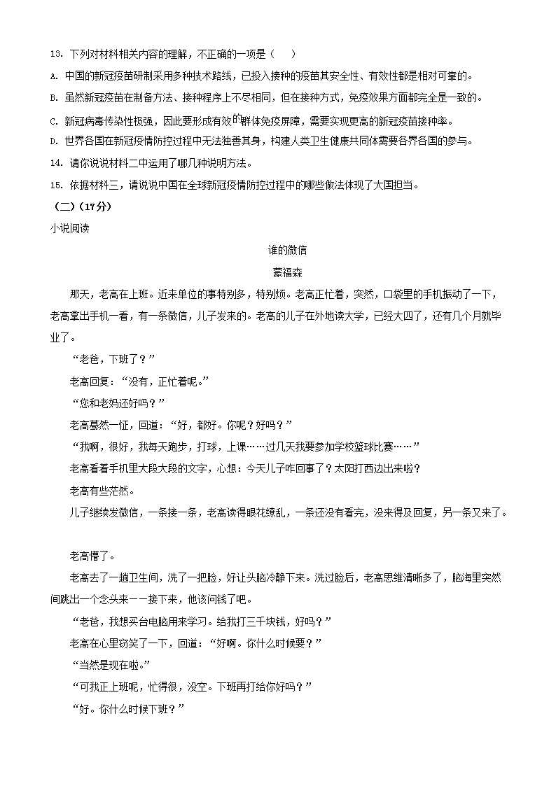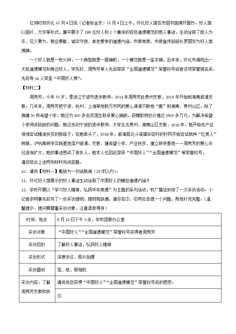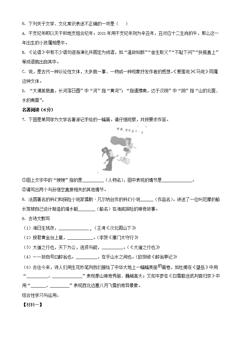 【文档名称】 2021年湖南怀化中考语文试题及答案(Word版).doc