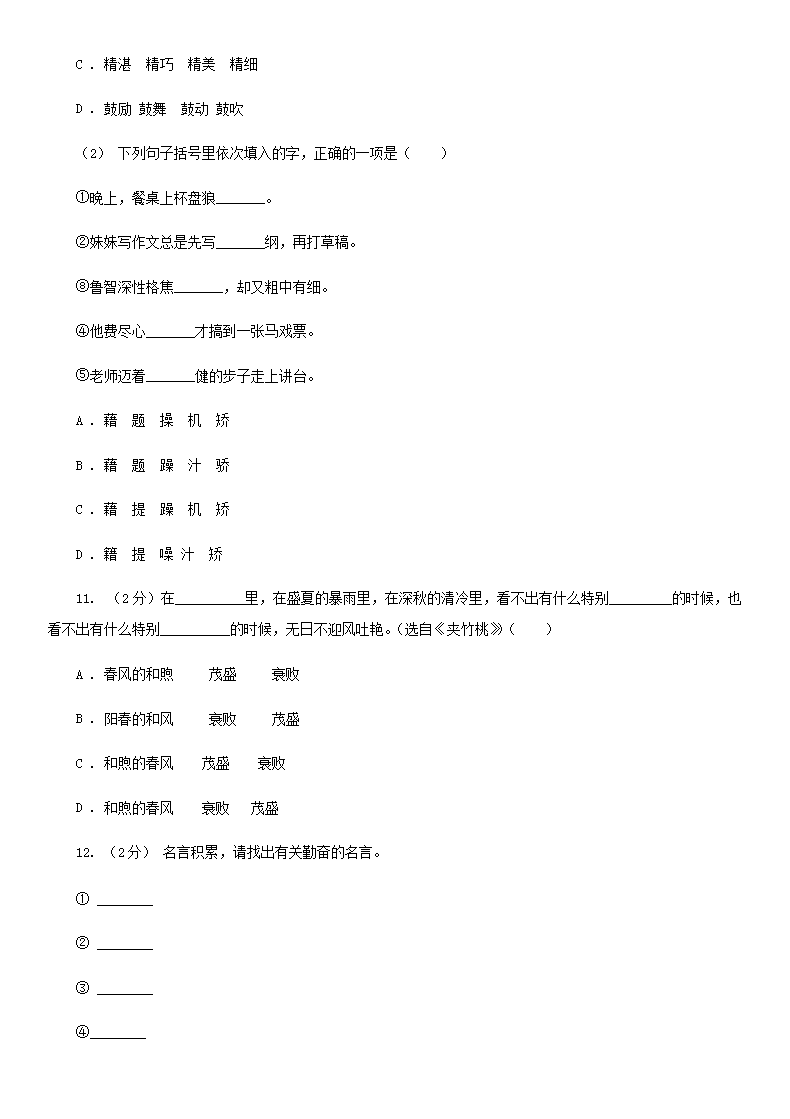 【文档名称】 2020年四川资阳小升初语文真题及答案I卷(Word版).doc