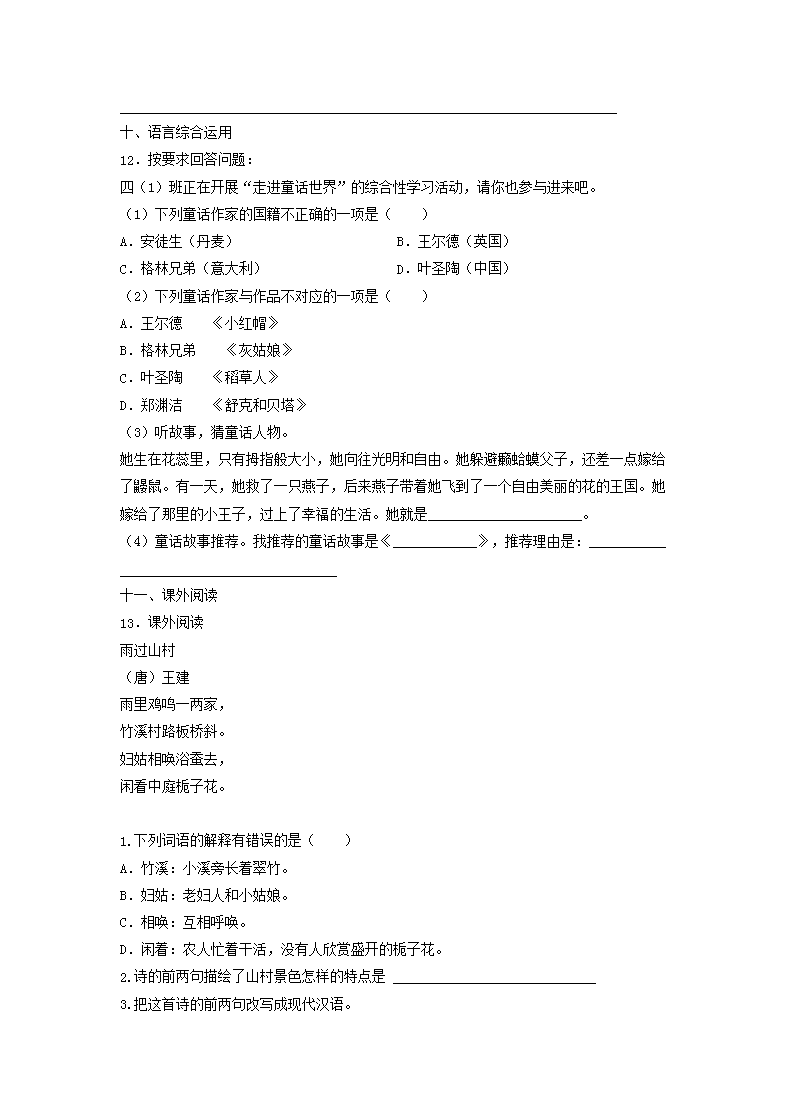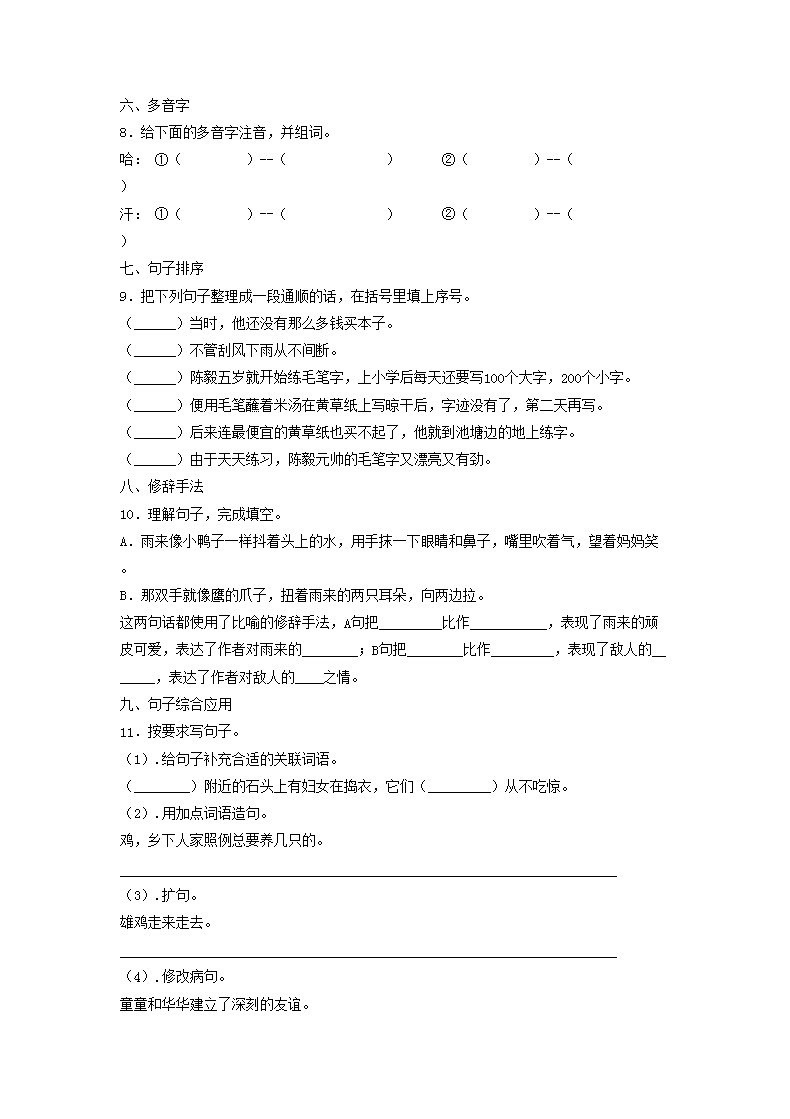 【文档名称】 2020年四川资阳小升初语文真题及答案(Word版).doc